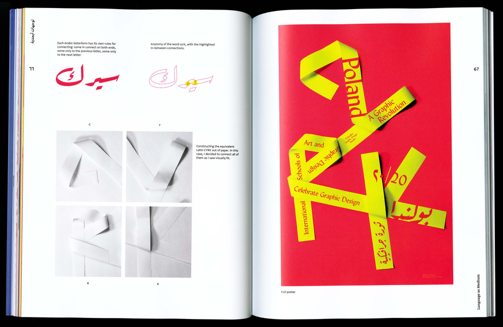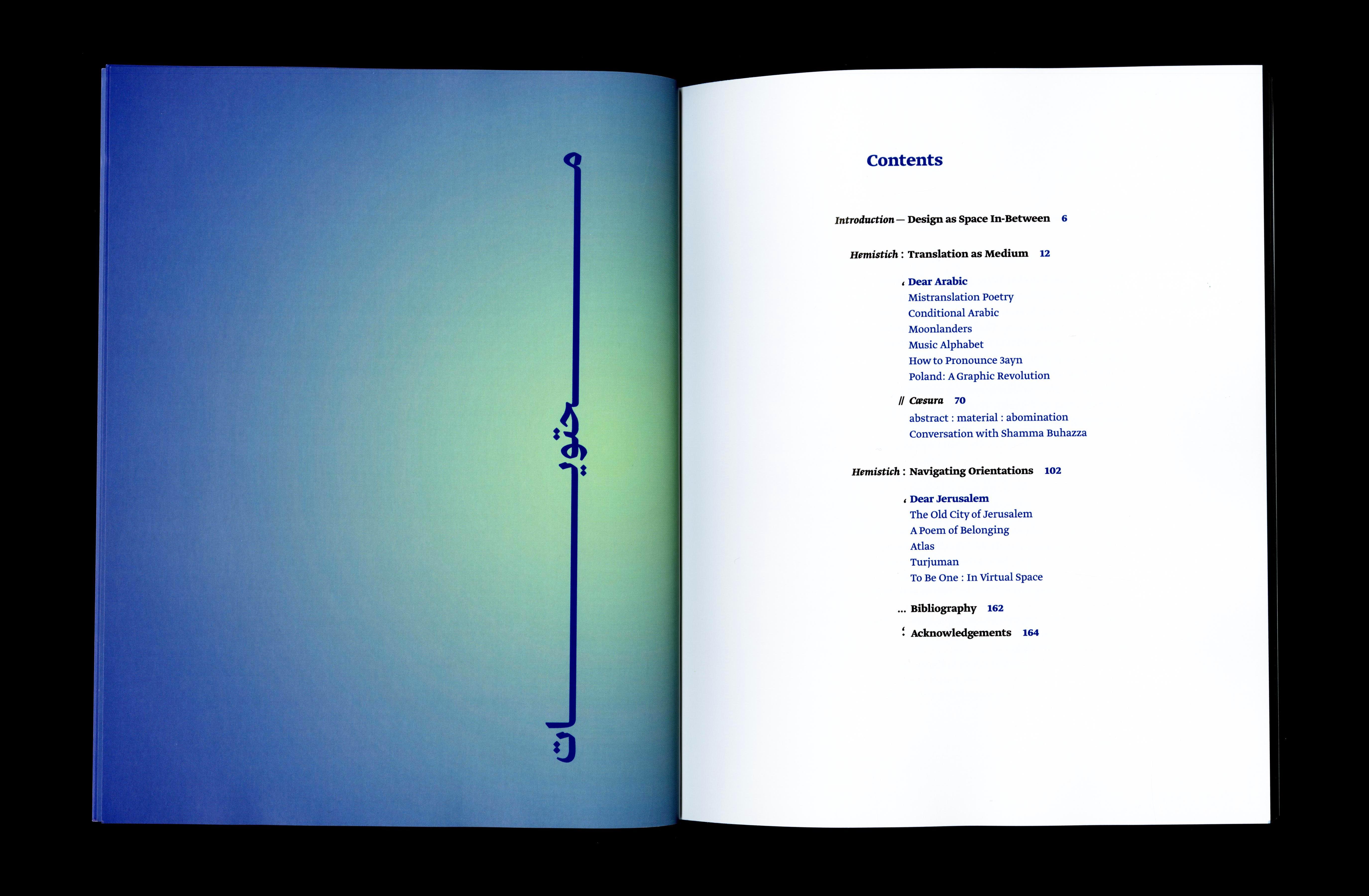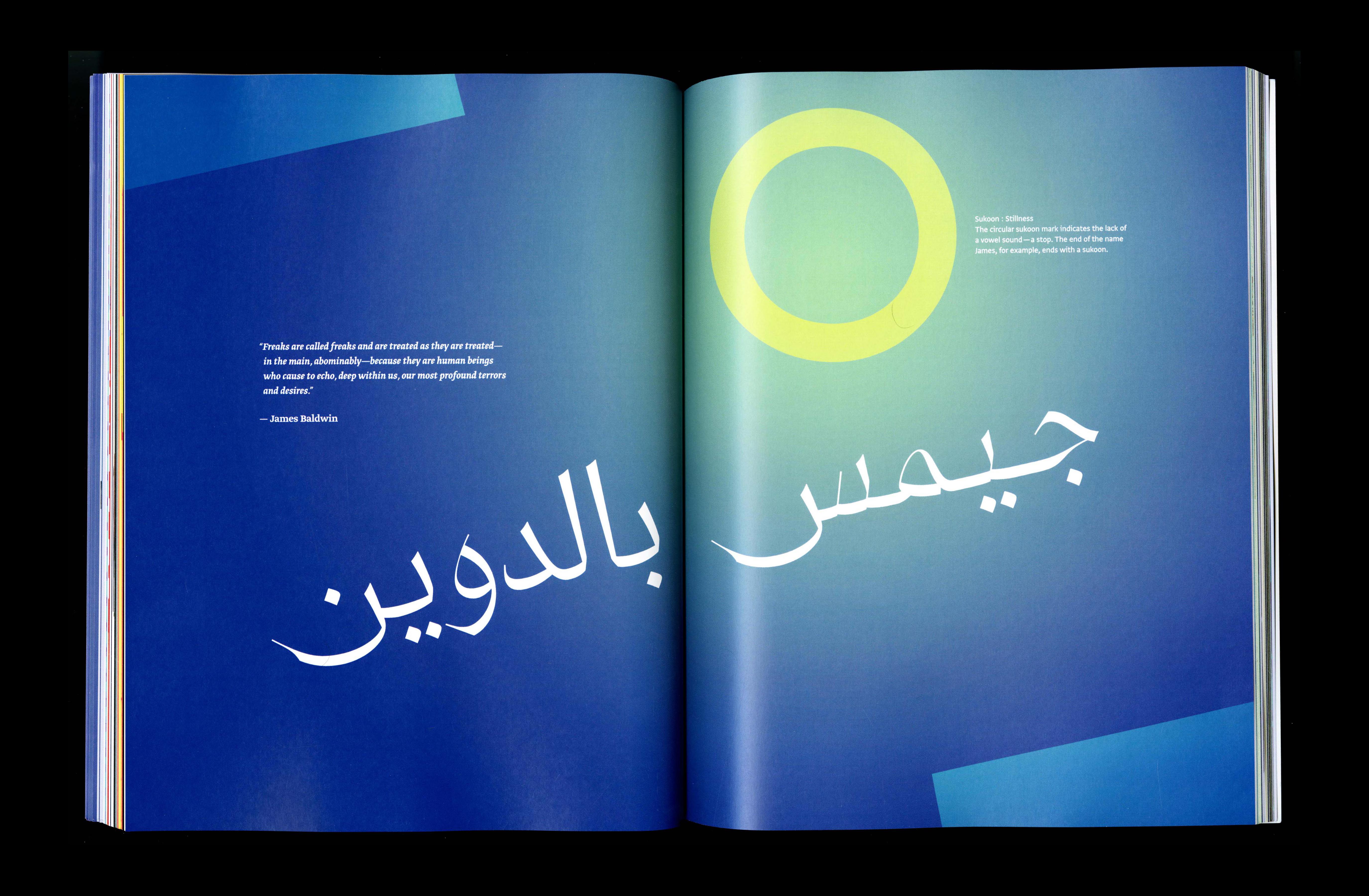 The Greta typeface collection – I have used Greta Sans (Latin) + Greta Arabic and Greta Text (Latin) + Greta Text Arabic) – is both beautiful and robust for typesetting this bilingual book which contains a variety of informational, discursive, and poetic writing. The elegant 29LT Zeyn enhances the expressiveness of the content and features distinctive shapes that help illustrate the differences between the Arabic and Latin scripts.