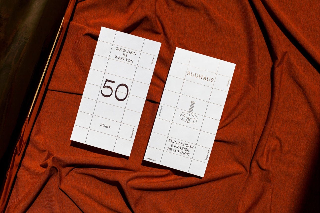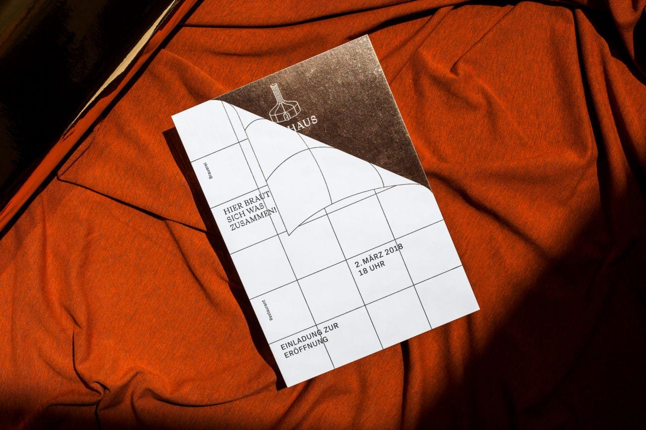 The new design creates a suspenseful bridge between restaurant and measurement technology while communicating the precision, quality and pleasant atmosphere of a contemporary restaurant. A brewing kettle in the line grid and the entrance door serve as a metaphor for an open, special place that is all about enjoying beer, food and hospitality. Following the materiality of the brewing kettle, the color copper consistently appears in the façade, the architecture and all printed touch points. The different resolutions point to the topic of measurement and create a differentiating, memorable appearance.