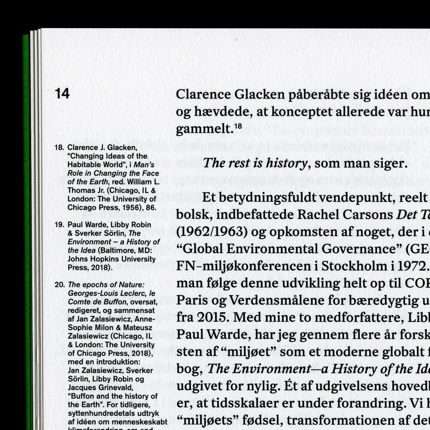 Designer Mathias Skafte used Akzidenz Grotesk for the cover and small print in the interior (notes, page numbers) and Haarlem (Edition Studio) for body copy.