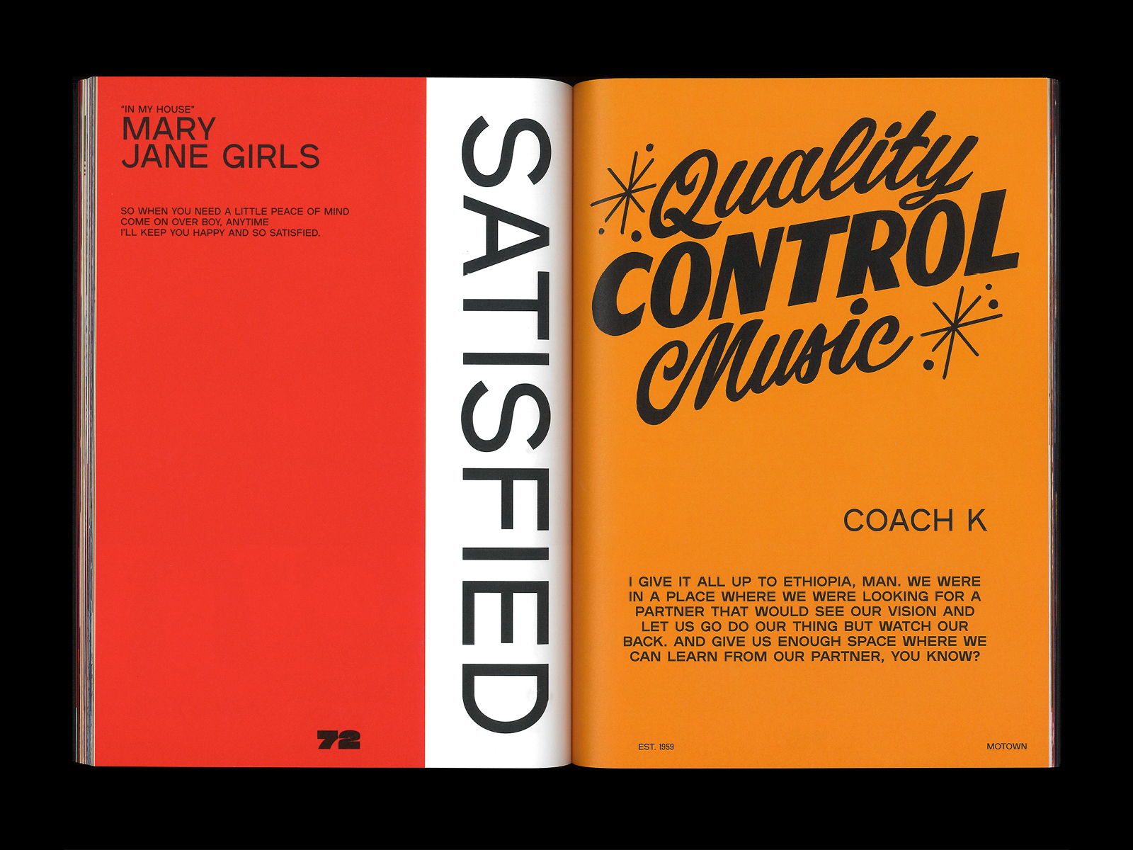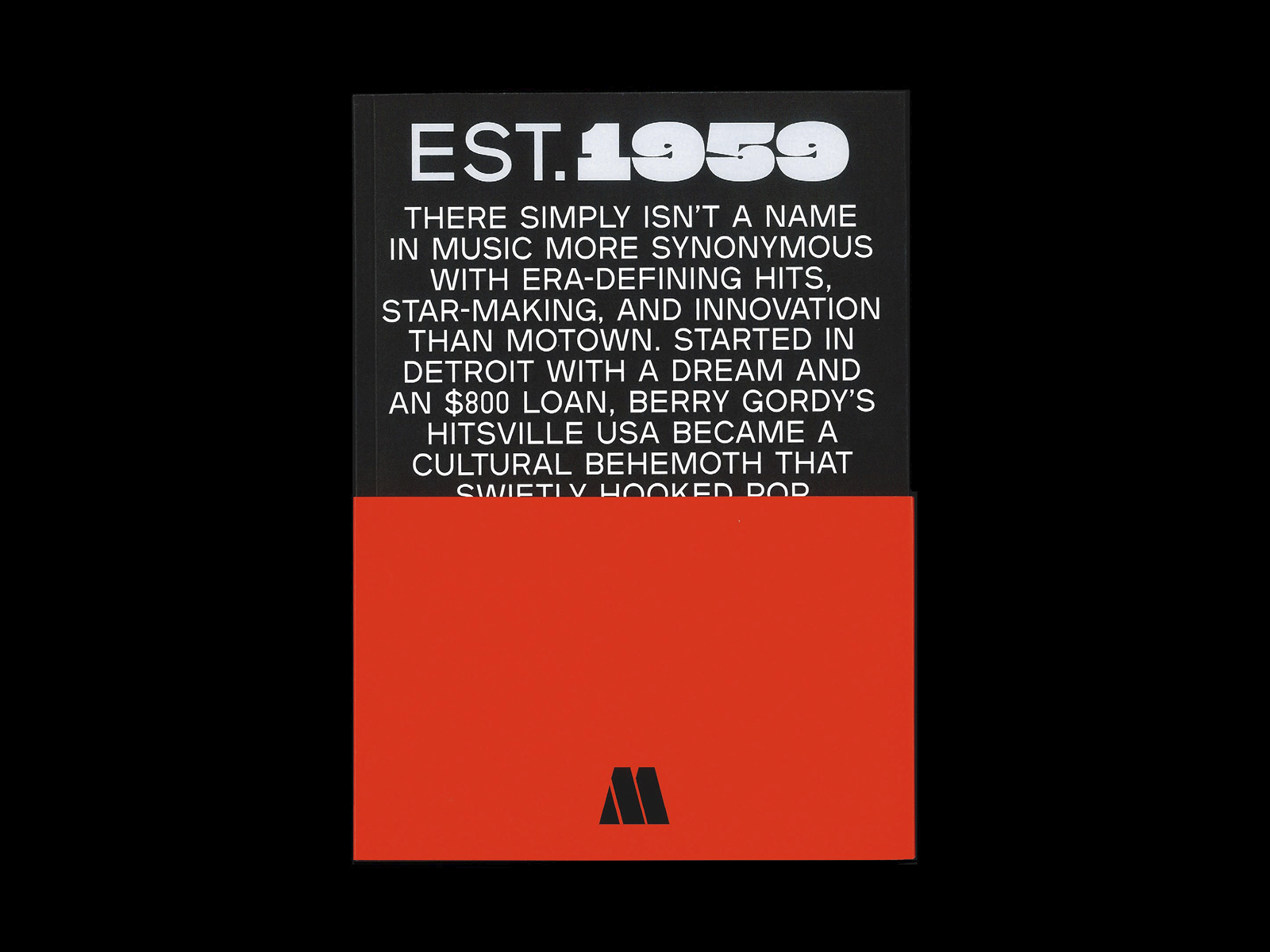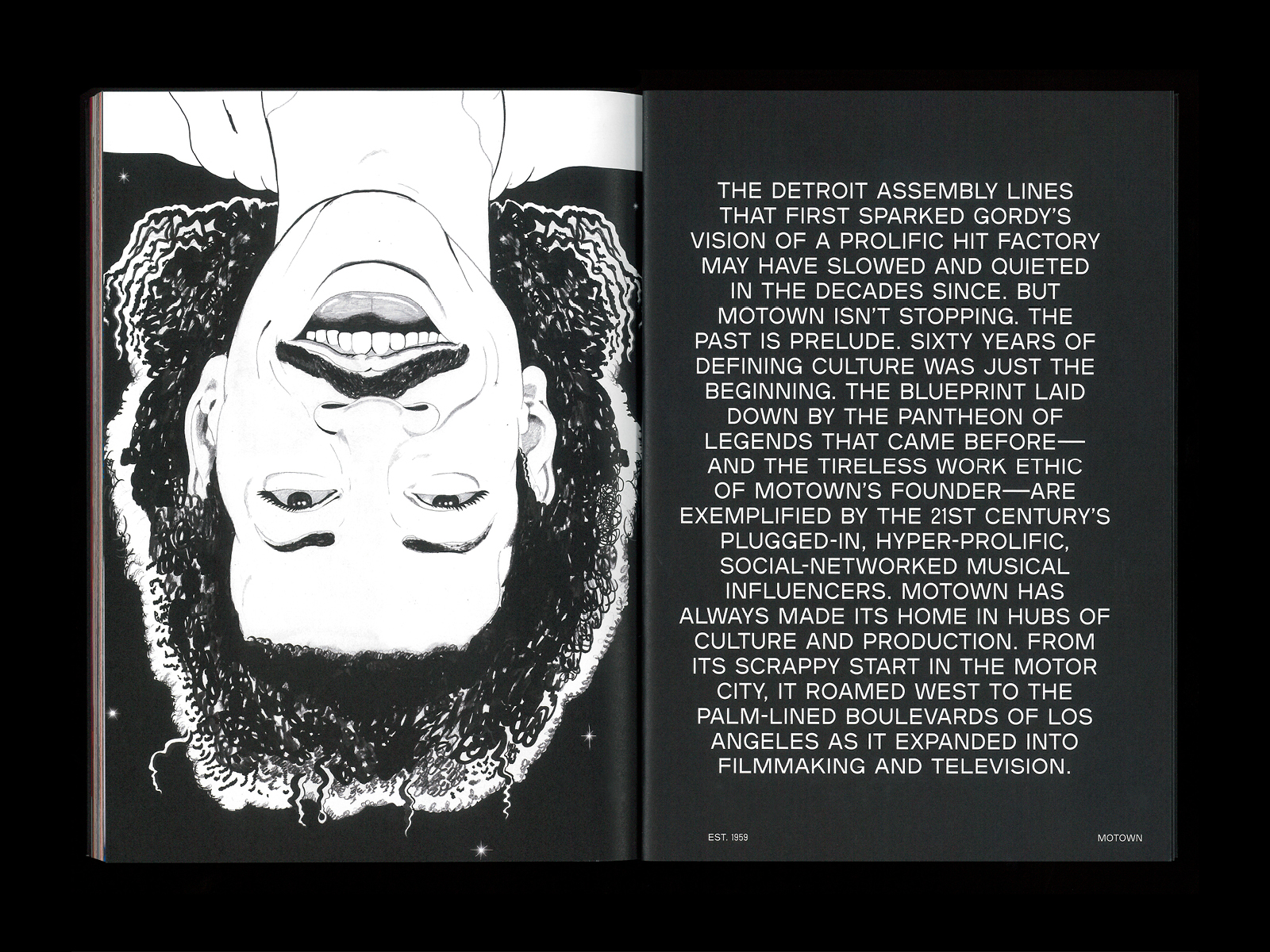 For Est. 1959, a book that celebrates Motown Records’ 60th anniversary in 2019, Natalie Shields (designer at Doubleday & Cartwright) used the typeface Plaak, designed by Damien Gautier and distributed by 205TF. “1959” is in Sharp Grotesk Black 25 by Sharp Type.