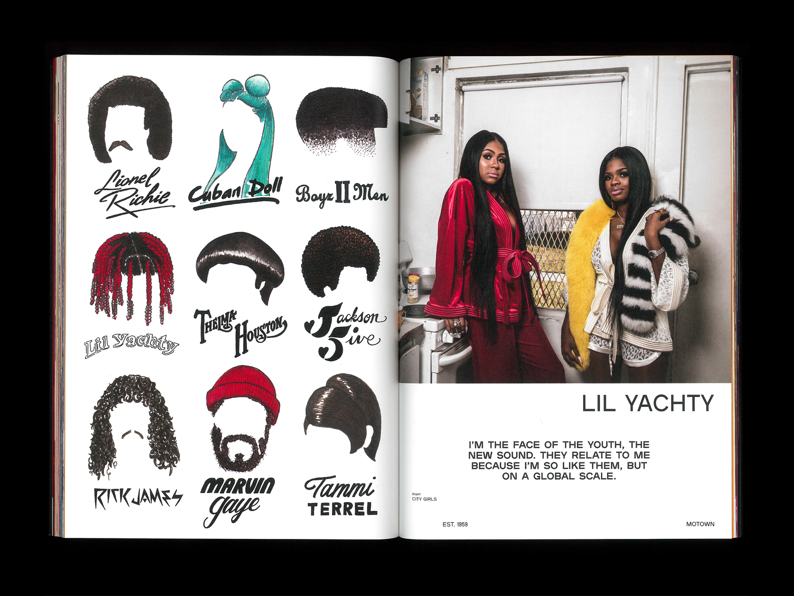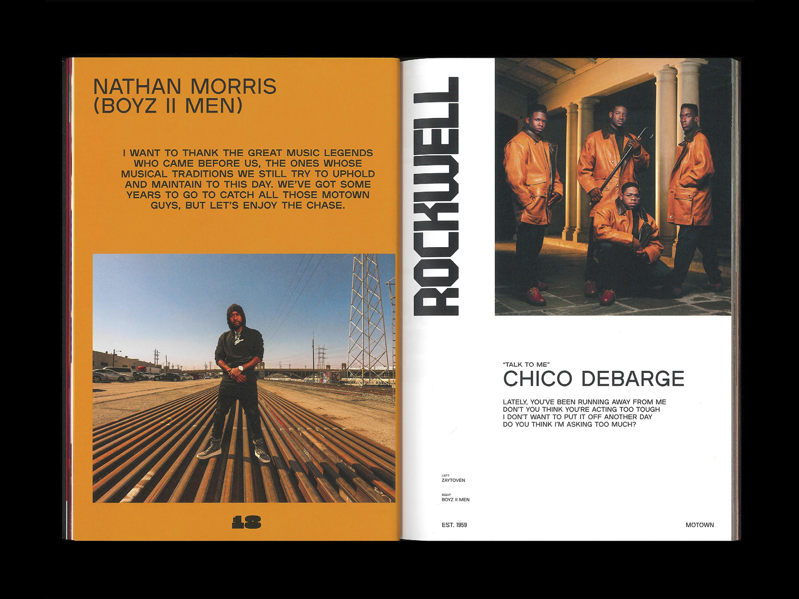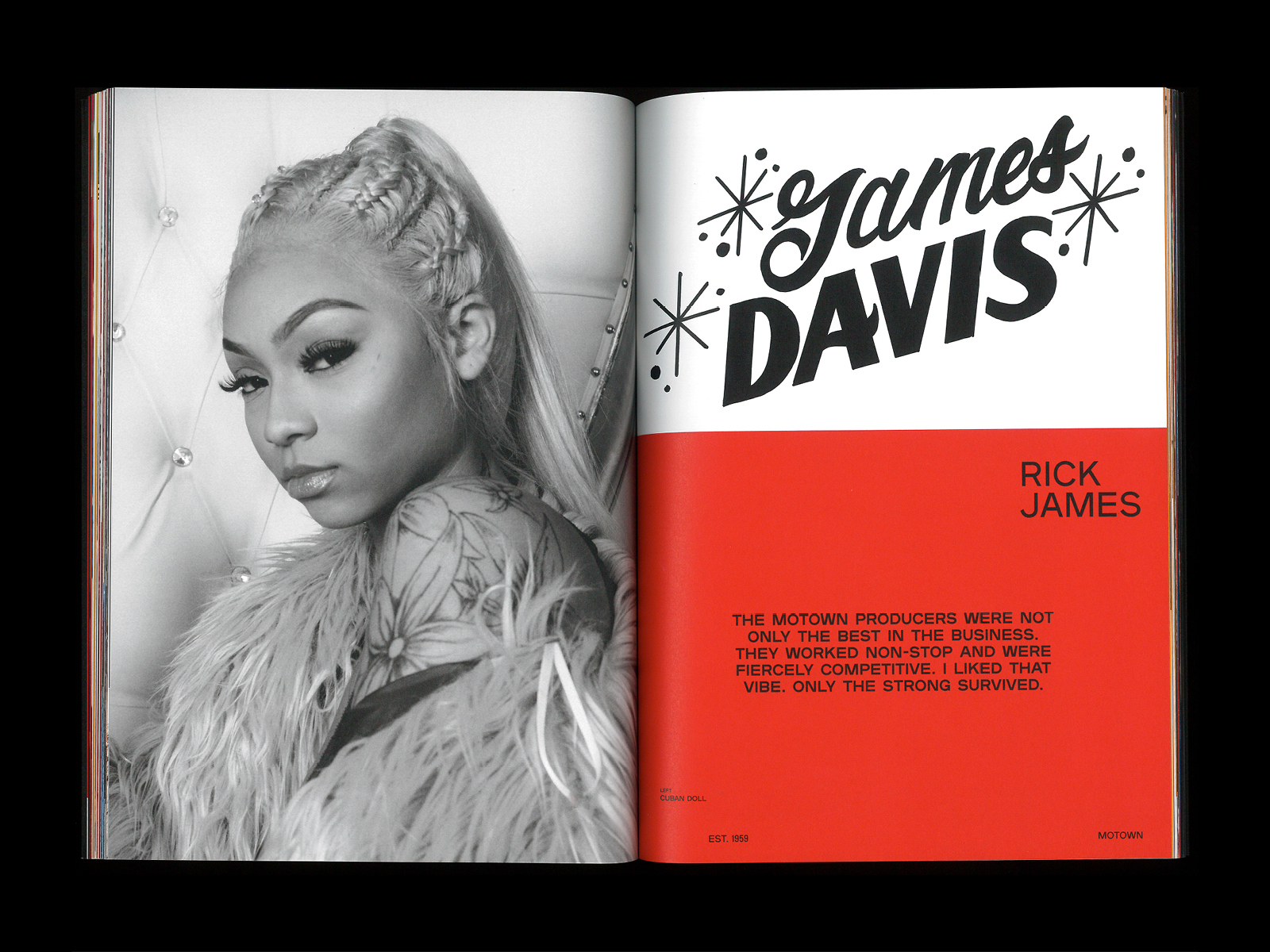 For Est. 1959, a book that celebrates Motown Records’ 60th anniversary in 2019, Natalie Shields (designer at Doubleday & Cartwright) used the typeface Plaak, designed by Damien Gautier and distributed by 205TF. “1959” is in Sharp Grotesk Black 25 by Sharp Type.