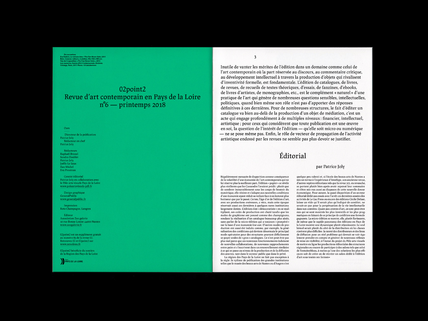 02point2 is an annual and free contemporary art magazine, which accompanies the magazine 02. 20,000 copies are distributed to over 200 art venues in France and other European countries. Designed by GeneralPublic in Paris for Zoo Galerie.
