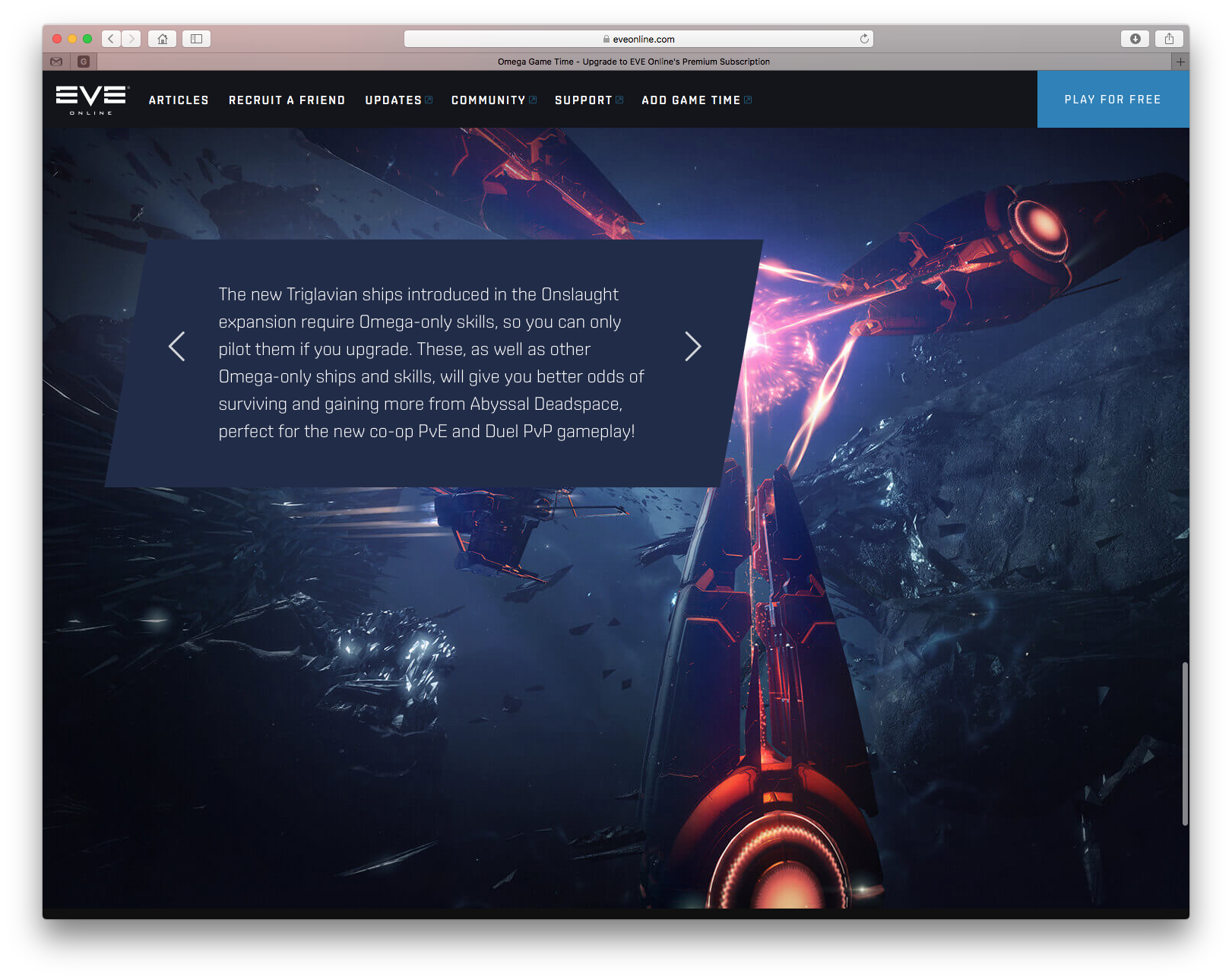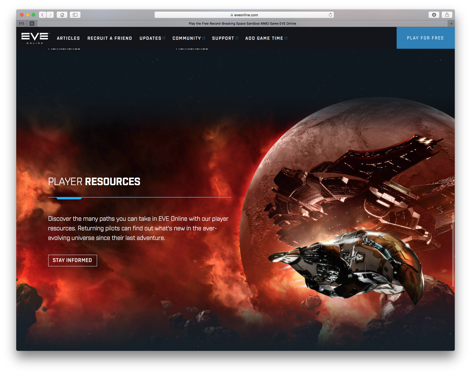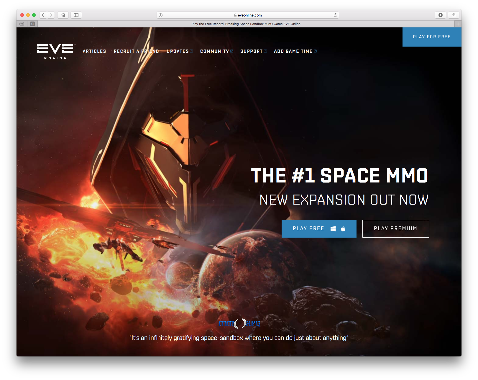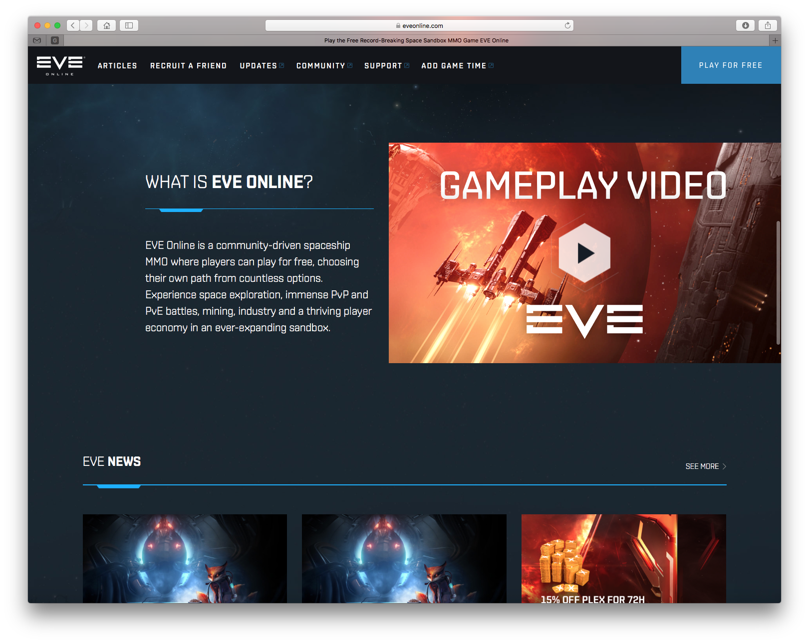 a space-based, persistent world massively multiplayer online role-playing game developed and published by CCP Games. Players of Eve Online can participate in a number of in-game professions and activities, including mining, piracy, manufacturing, trading, exploration, and combat (both player versus environment and player versus player). The game contains a total of 7,800 star systems that can be visited by players. Released in 2003, the game is renowned for its scale and complexity with regards to player interactions. — Wikipedia