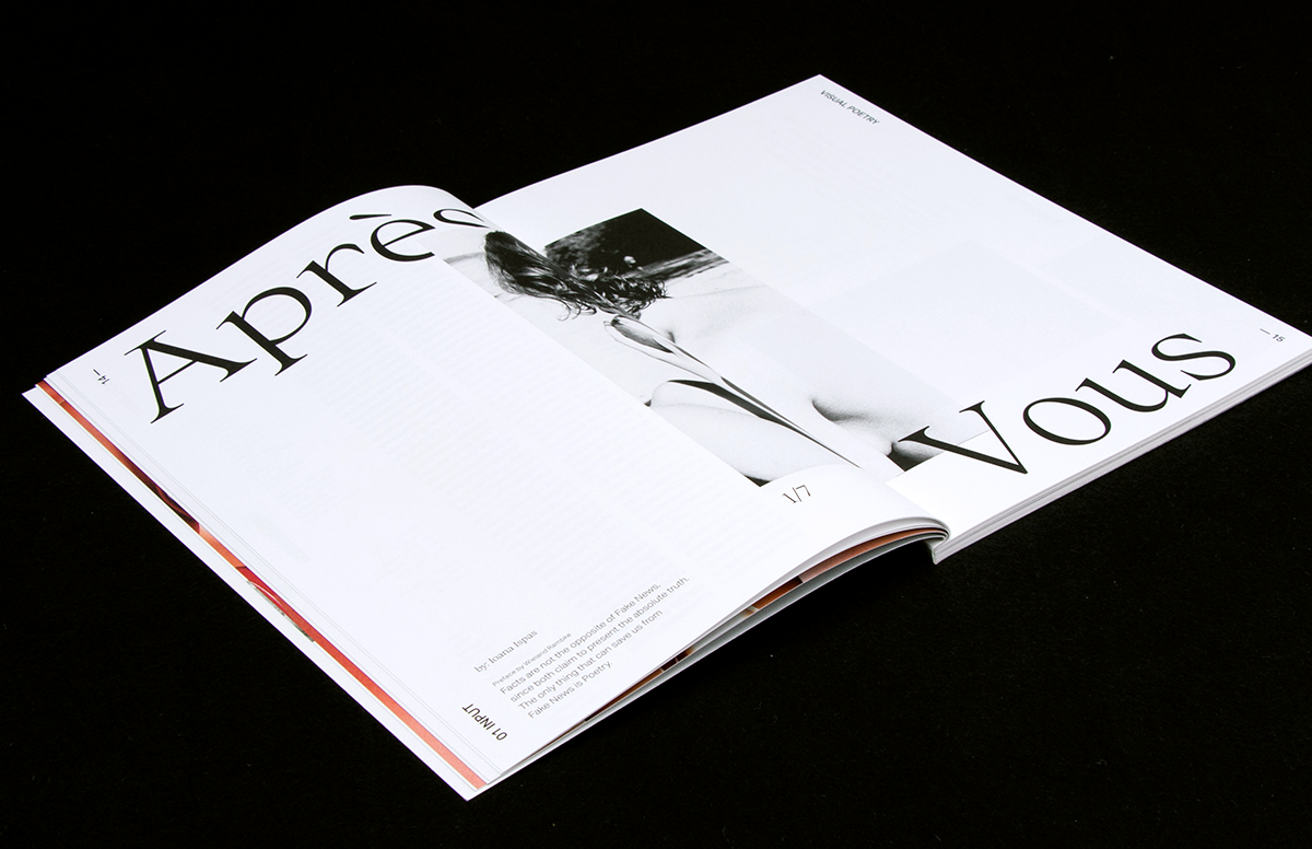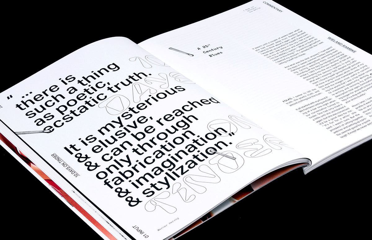 In every issue the aim is to find fonts that represent the “zeitgeist” and the chosen topic, for this reason we focus on freshly released fonts or hidden gems we consider valuable to share with our readers. Along with the two font that are always present in Cellophane (Aktiv Grotesk and Space Mono), this time we decided to use multiple fonts to show the diversity of the design team that worked on the layout. The chosen fonts are very different: we used Pilowlava, a new font from Velvetyne, that gives a fresh touch to the mag with its crazy shapes. We also used an experimental (and not yet completed) font such as 1,617 by Leonardo Tavares alongside some of the beautiful fonts designed by the Italian group Collletttivo: Messapia and Ortica. The challenge in combining a big variety of fonts is to maintain consistency, for this reason we mostly focused on black and white in order to give a strong identity to the whole magazine.
