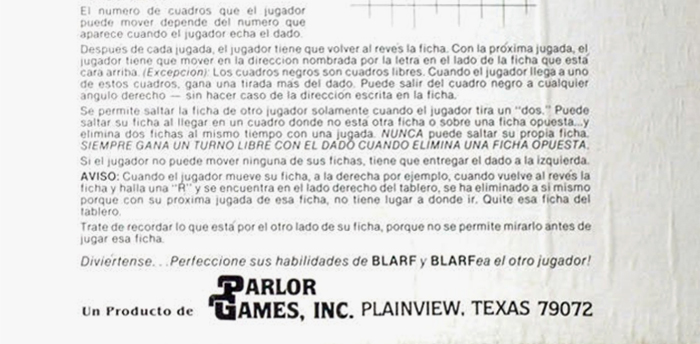 Branding and packaging for the 1981 board game Blarf, designed by Robert H. Hollars and published by Parlor Games, Inc.