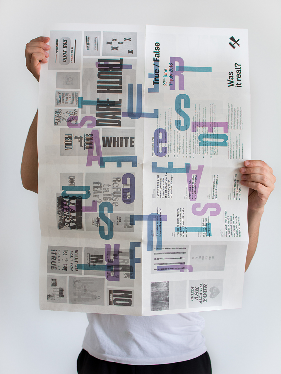 All text uses Sempione Grotesk by Tipiblu × Cast, paired with a selection of big wood type used as a pattern of glyphs, and as poster inserts. As for now, the correct names of the wood type remain unknown.