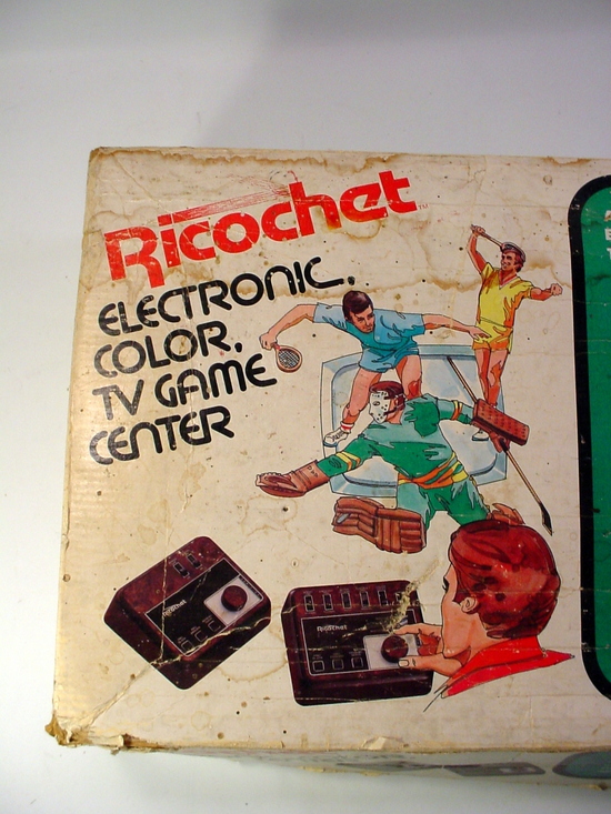 The logo features Motter Tektura and all other on-console text is in Univers. The logo adds a swish around the tittle, reinterpreting it as the Pong ball from the game. The box also uses Univers for all body text and features the same logo, but with the addition of a tagline (“Electronic, color, TV game center”) in Cut-In. The tagline is repeated in Futura Bold in a green field on the box. The manual adds the company name under the logo, in what appears to be Eurostile Extended. From The Angry Video Game Nerd: