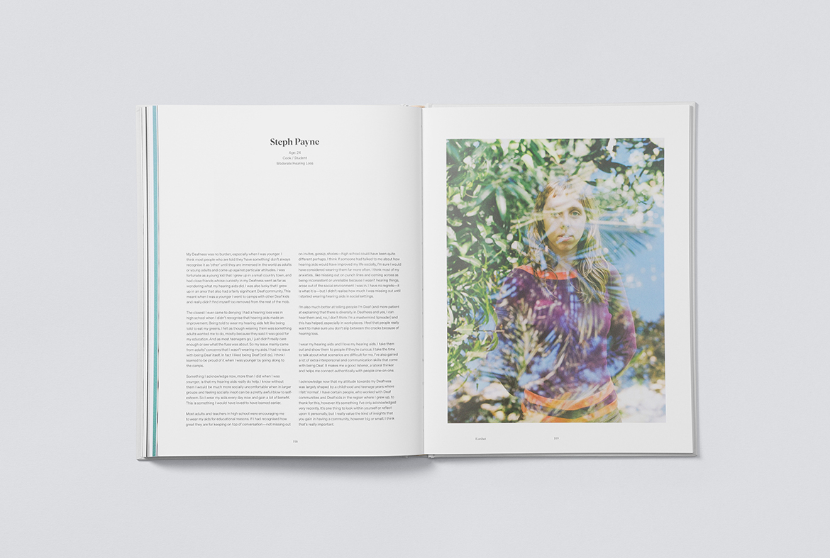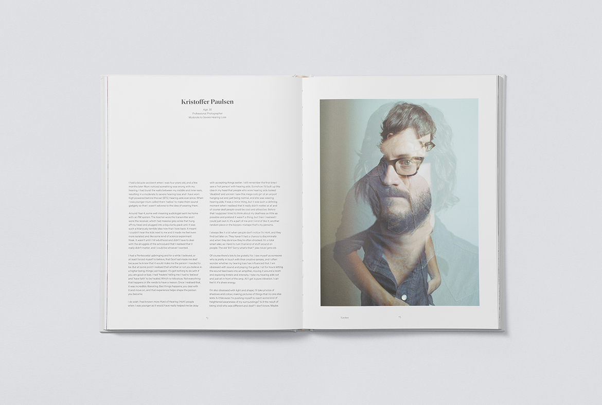 Earshot is a photographic collection of stories on deafness and hearing loss by photographer and friend Kate Disher-Quill. Kate, who was diagnosed with hearing loss at three years of age and was fitted with hearing aids when she was 10, spent her childhood, adolescence and early adulthood feeling ashamed and in denial of her deafness. She concealed it for over 16 years, which included hiding the many pairs of hearing aids she was fitted with. The driving force was to create a book for her younger self – something that would have helped her accept her hearing loss much earlier.