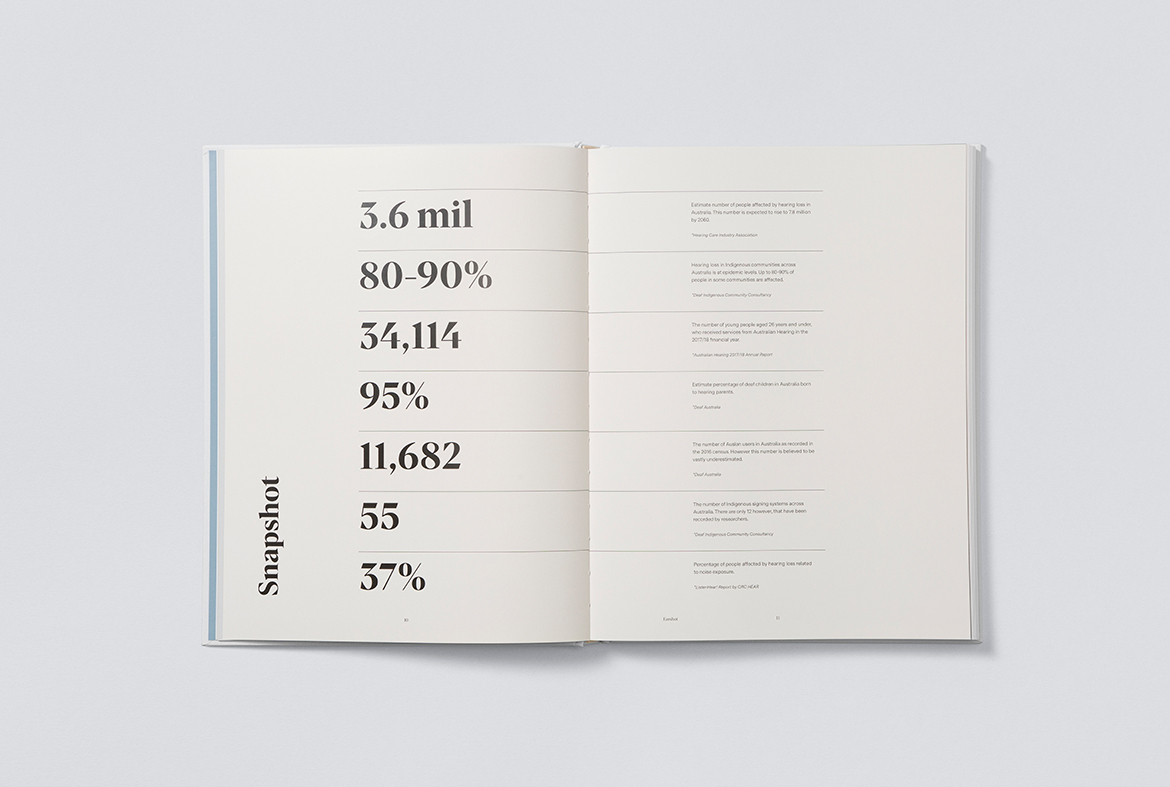 Over the course of a year, we worked with Kate to design and help produce Earshot. The result is a visually beautiful, compelling and educational book.