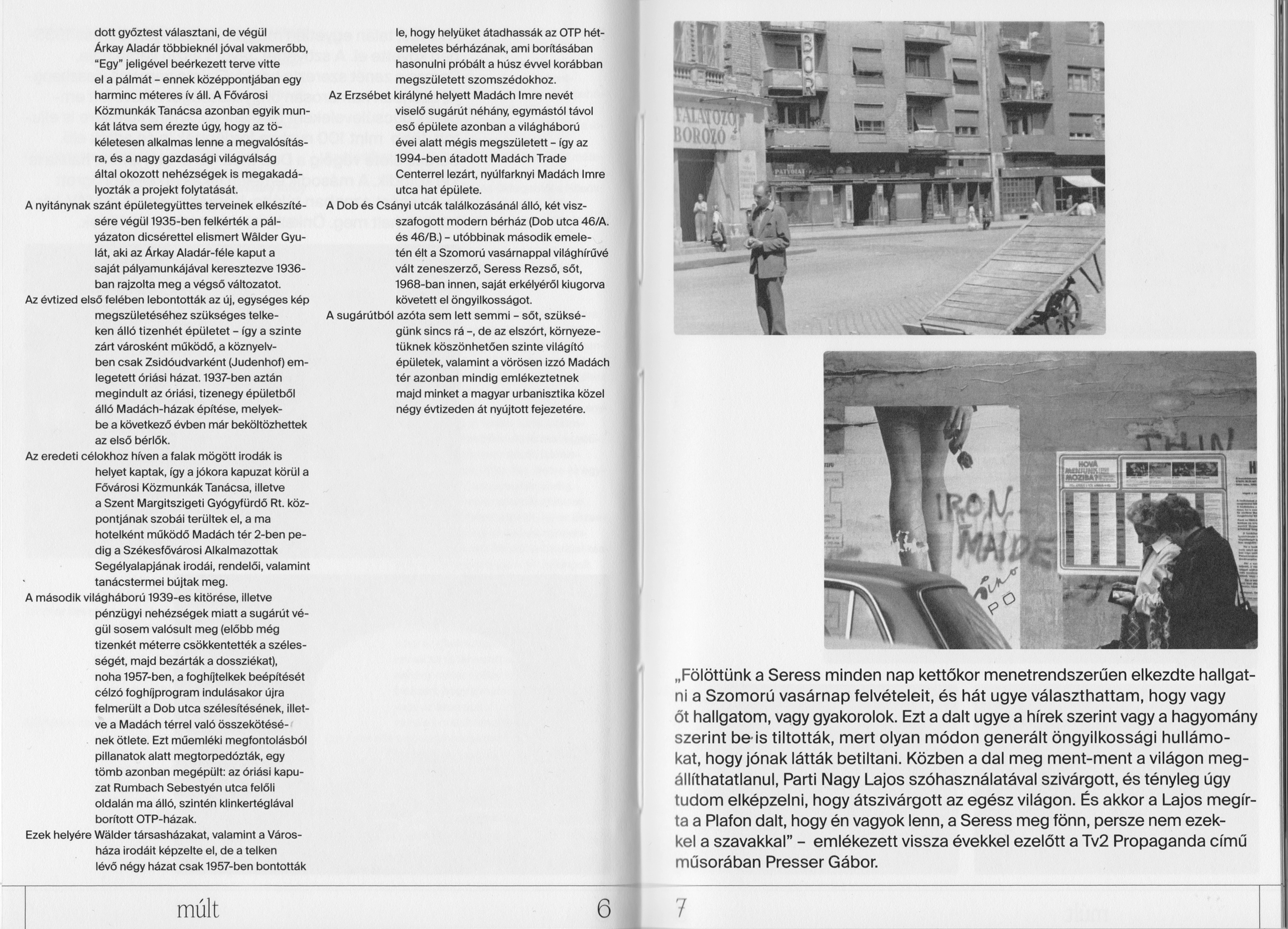 On Dob street, Budapest, there are two houses, that signaled the start of the future Madách Avenue – which was never built. This publication (66 pages) documents the research about Madách Avenue 46/b. The work is divided into four sections: the first (past) deals with the rich history of the building – both from a humane and urbanistic viewpoint; the second (present) shows the present state; and using these pictures the third (material) examines closely and more abstractly the materials used in the house. Finally, in the fourth chapter (forms) different digital exercises are shown, based on the structures of the house. These experiments and forms conclude in a summoning poster inspired by the whole process. The cover of the book is embossed with one of these complex forms.