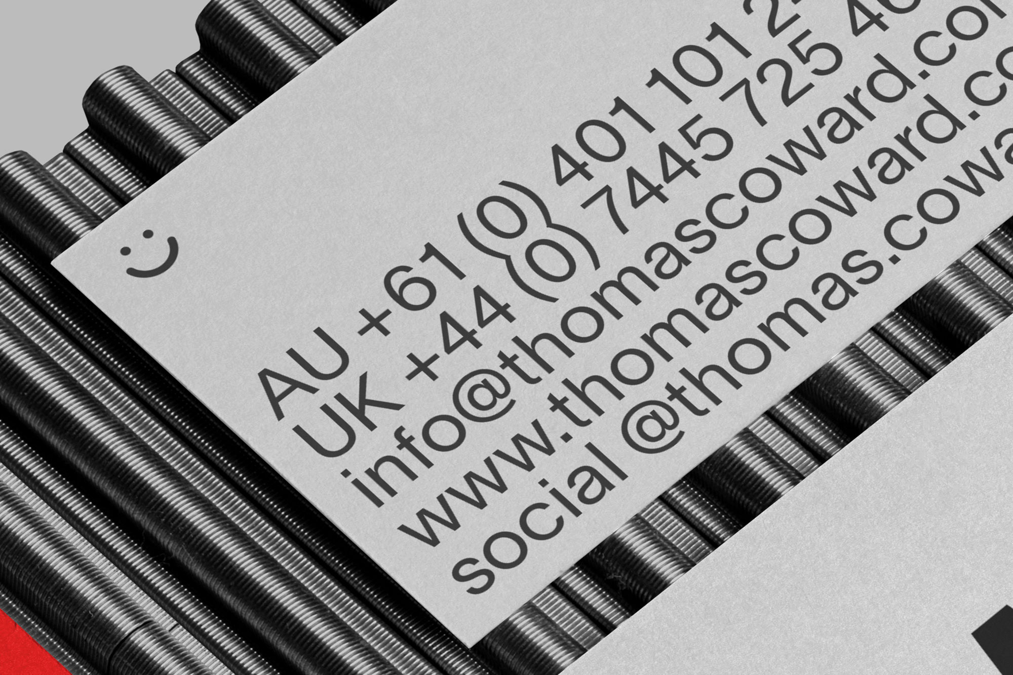 A logo was created by heavily manipulating Akzidenz Grotesk to create a completely individual outcome for his practice. On Thomas’s website, visitors are welcomed with an animated logo, showing its the flexibility in movement.