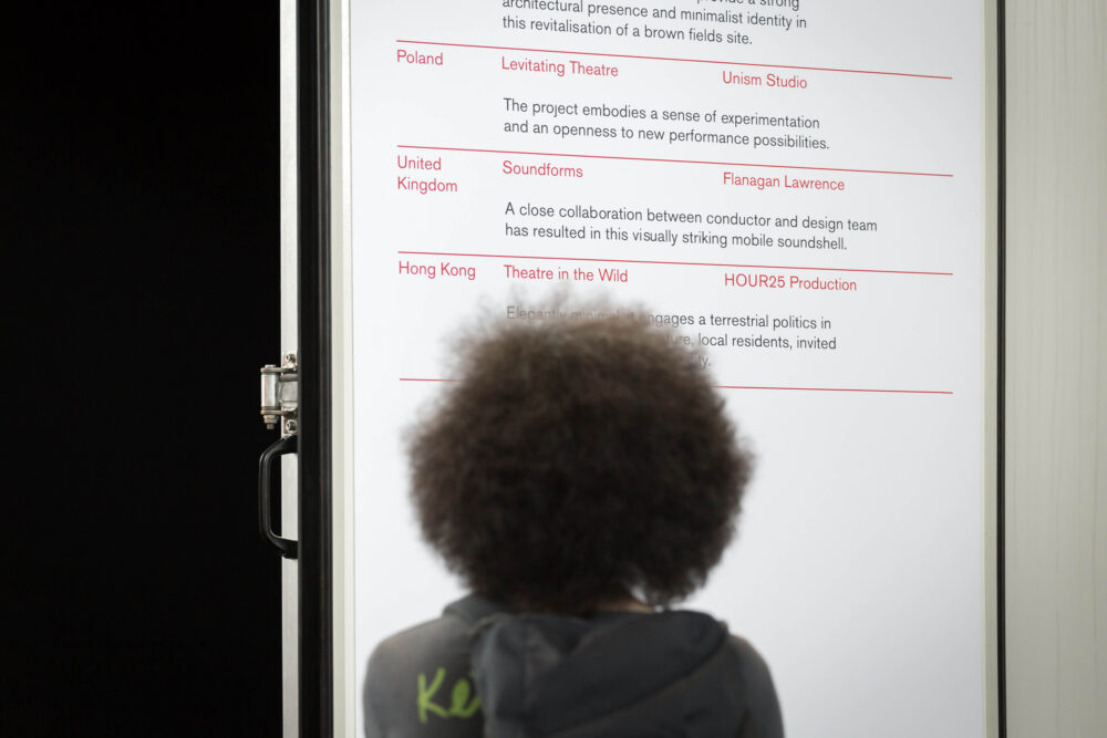The Performance Space Exhibition showcases a wide range of possibilities for theatre architecture. From found and transformed spaces to major national projects to temporal outdoor structures, especially those in remote or complicated areas where the creators of the space might not be architects.