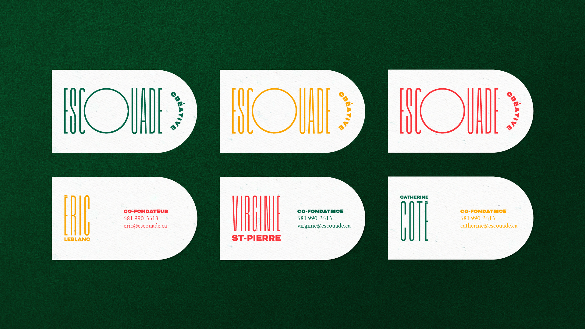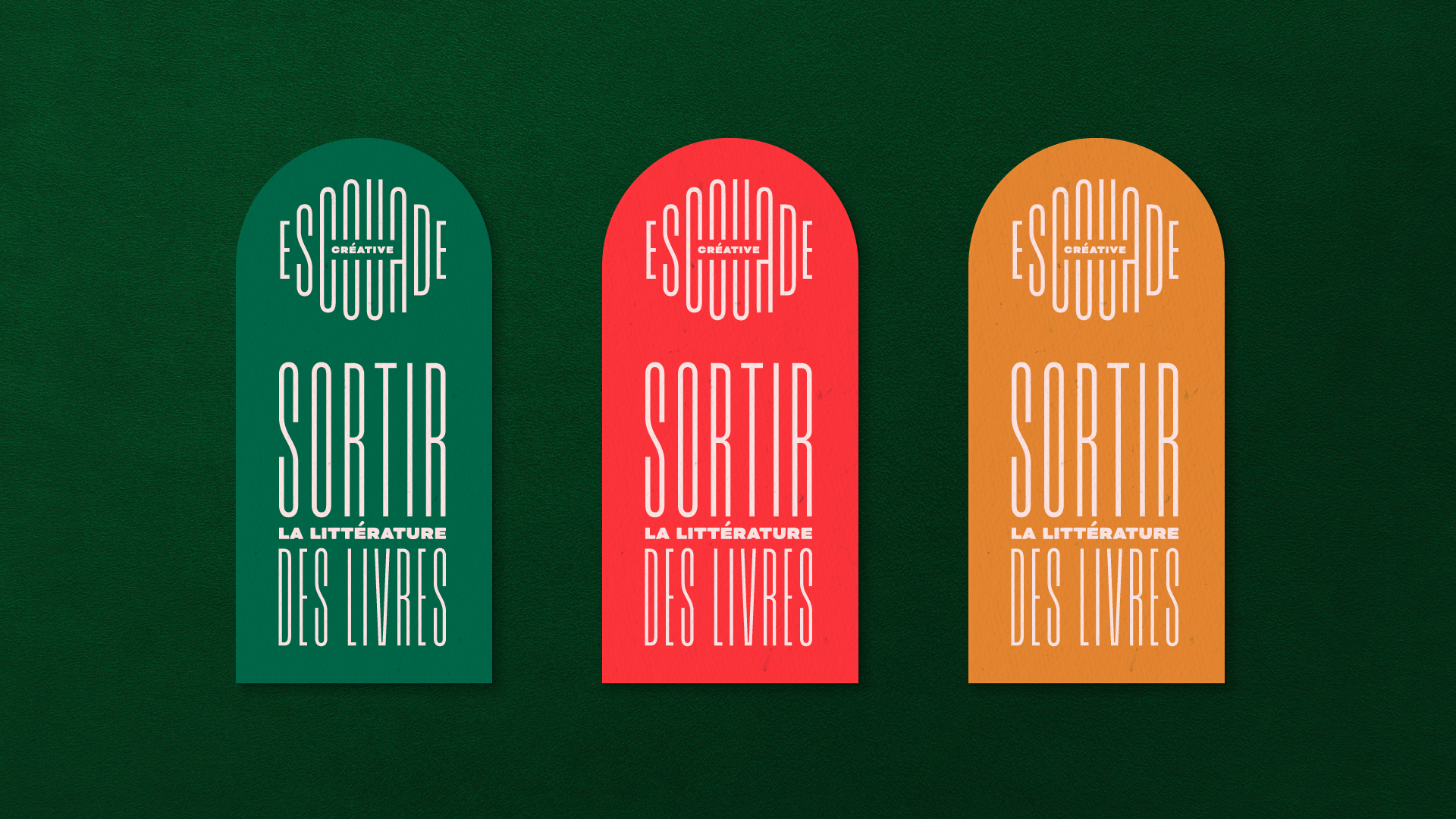 The identity uses Grandmaster together with Bicyclette Bold. The aim was to create rhythm between the fonts. L’Escouade is all about promoting literature, which is usually presented in a more traditional manner. They are doing it in a fresh and creative way, though, and take literature “out of the books and into the streets”. That’s why the logo is quite playful with the contrasting fonts and the extended letterforms of Grandmaster. Also, I love Bicyclette because it is quite simple but it had enough personality to work with Grandmaster.