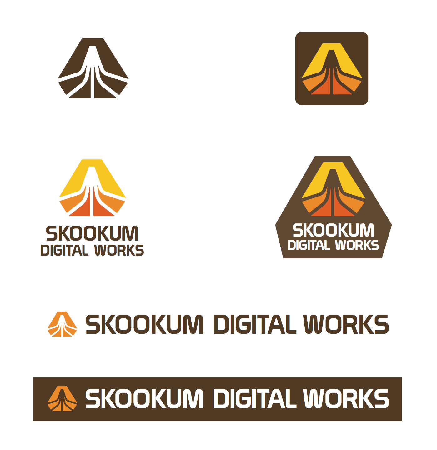 The logo for Skookum Digital Works was designed by Aaron Draplin. The “space volcano” mark is pared with a wordmark in Prototype. From Skookum:
