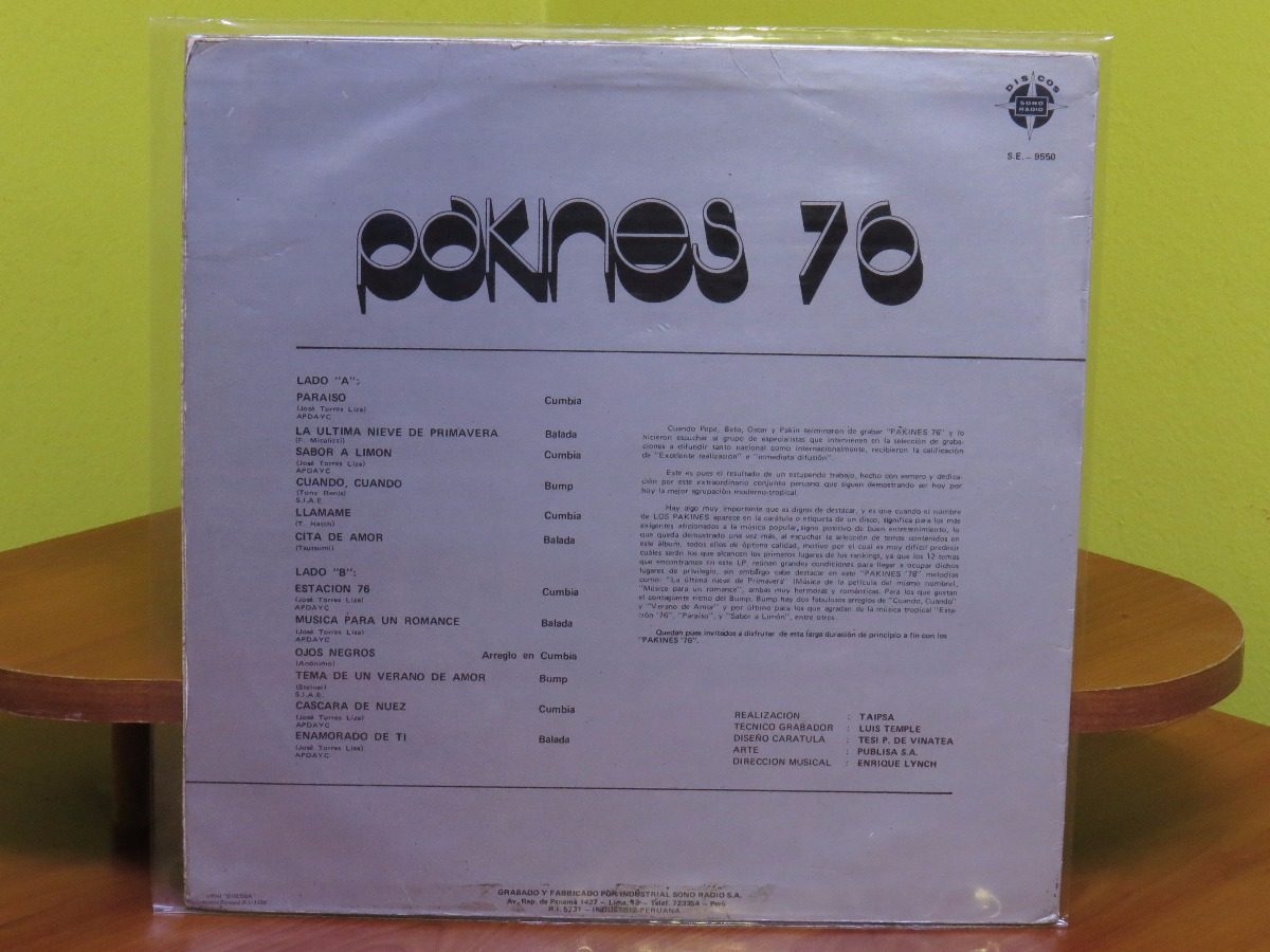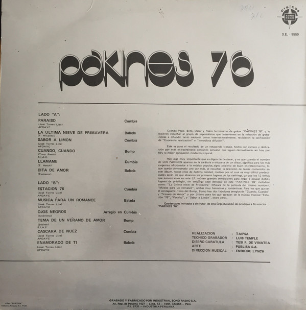 Los Pakines – Pakines 76 album art Contributed by Robert Beatty on Aug 5th, 2019. Artwork published in 1976. Source: articulo.mercadolibre.cl License: All Rights Reserved. Album cover for Peruvian Cumbia rock group Los Pakines, released on the Sono Radio label in 1976. Source: articulo.mercadolibre.cl License: All Rights Reserved. Source: www.discogs.com License: All Rights Reserved. Source: www.discogs.com License: All Rights Reserved. Typefaces More about Lucia ShadowMore about UniversGet Univers Formats Album Art (4277) Topics Music (6404) Designers/Agencies Tesi P. de Vinatea (1) Tagged withcumbia (3)Latin America (57)Peru (12)album records (2848)1970s albums (371)one color (318)black and white (2034)Sono Radio (2)back covers (2300)vinyl records (3393) Artwork location Peru (33) In SetsMecanorma (Florian Hardwig) (216)RADIOGIAPPANESE (Leonardo de la Fuente) (2878) Post a comment Name Email – will not be published Website Your response Submit Comment More Lucia Shadow in use TWÏNS – “Transcend” single cover2022Miro DenckContributed by Miro Denck Ferdi Özbeğen – Teşekkürler album art1979unknownContributed by Robert Beatty Staff Pick Atari Touch Me poster1974unknownContributed by Robert Beatty Staff Pick Sponsor More in Music The Band – “Third Man Theme” German single cover1974unknownContributed by Garrison Martin Hip Hub Hooray festivalc. 2019Davy DenduyverXerxes HeirmanArne Van KauterContributed by Lewis McGuffie New Order, Certain General, and Karen Finley postcard1986Lawrence WeinerContributed by Nick Sherman The Rolling Stones – Around And Around album art1964unknownContributed by Florian Hardwig More in Album Art Agust D – Agust D mixtape cover2016unknownContributed by Raine Bangles – “Walk like an Egyptian” single cover1985Nancy DonaldTony LaneContributed by Jan Middendorp Staff Pick Talking Heads – “Psycho Killer” French single cover1978Roy S. DeaneContributed by Quentin Schmerber John Williams – The John Towner Touch album art1957unknownContributed by Rob Hudson More Fonts In Use Orval Carlos Sibelius – Ordre et progrès album art2017Le Groupe ³Johann Lhuillery / pxlcrpContributed by Pauline Nuñez Staff Pick Peach Berlin2019Peach BerlinVivien HoffmannContributed by Gareth Hague Staff Pick 100 Years of FLUL2011FBA (Ferrand Bicker & Associados)Contributed by Stephen Coles Staff Pick The Virginian-Pilot: Independence Day Special Issue2013Sam HundleyContributed by Stephen Coles Staff Pick