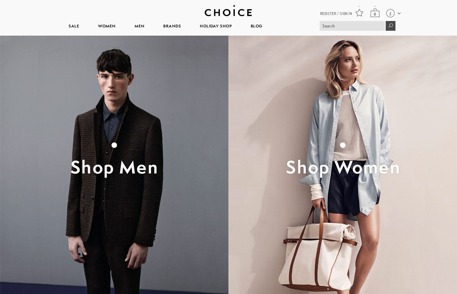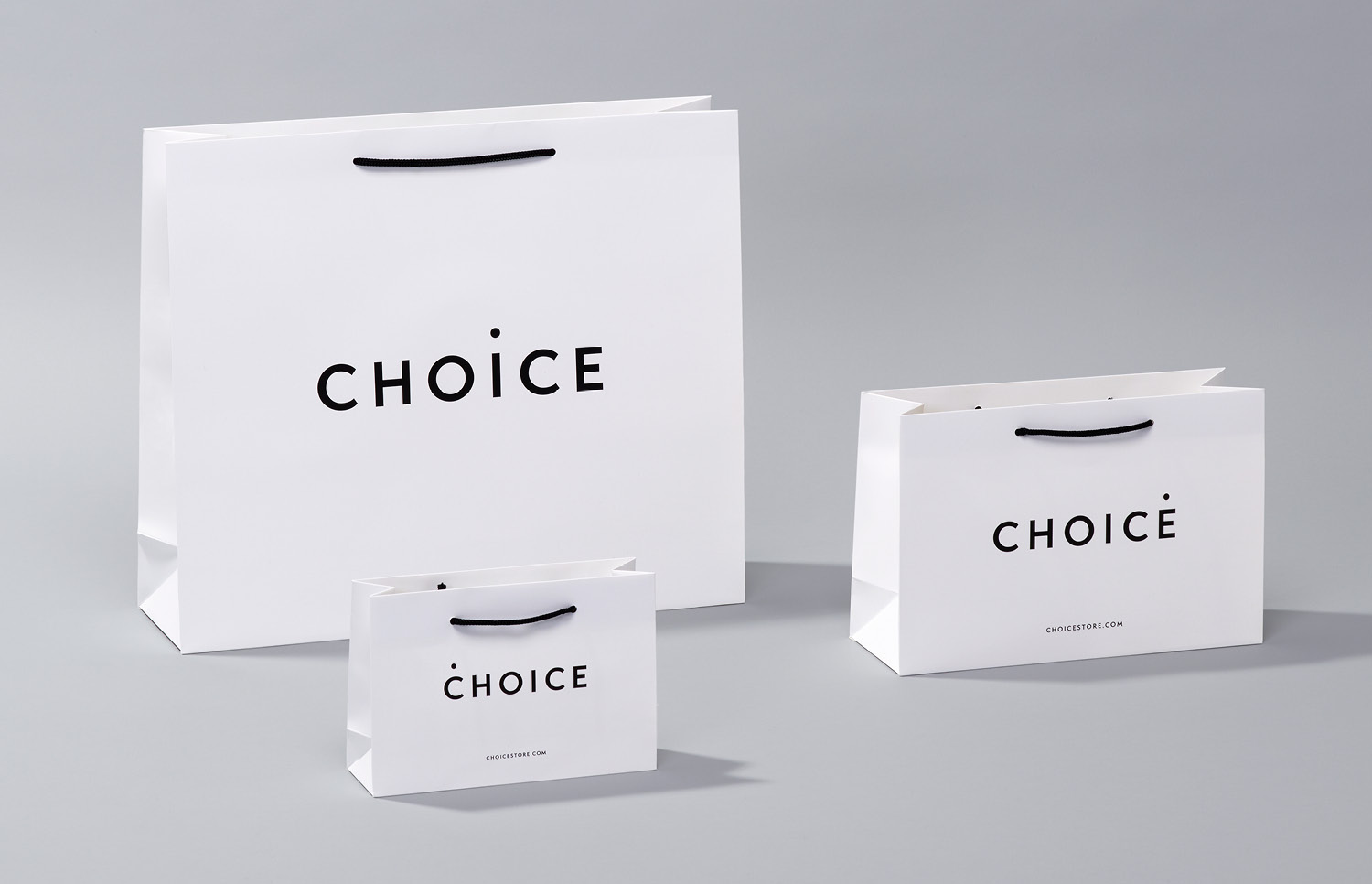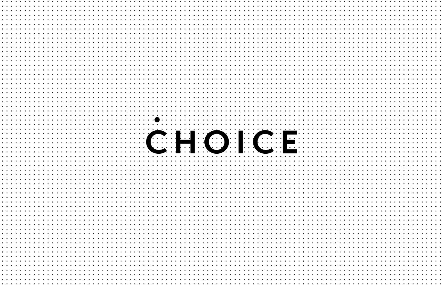 We established a new identity inspired by multiple options for luxury fashion retailer Choice, London based on the notion that with choice we have endless possibilities. The identity is built around a flexible dot that moves along each letter. All typography from logo to copy uses Semplicita Pro (Canada Type). Both concept and typography are applied both on and off screen from packaging to their website.