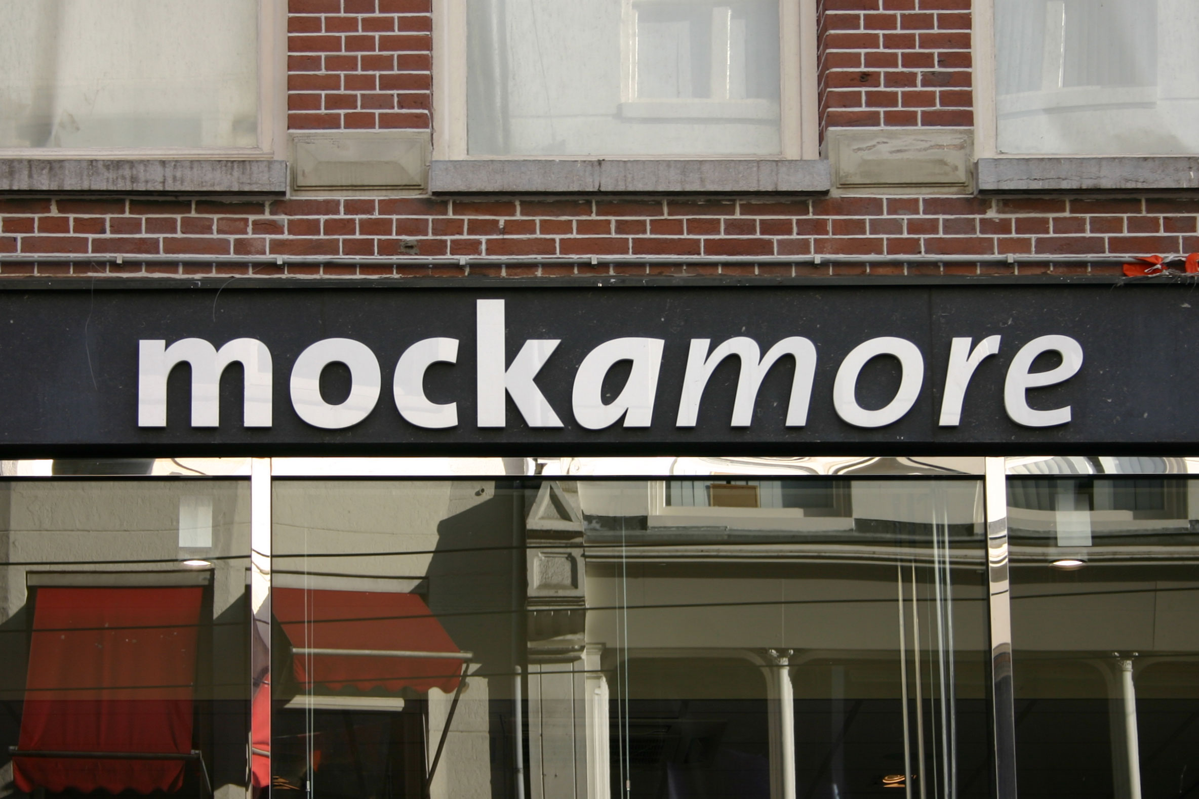Three of the many styles of TheSans (LucasFonts), combined in one logo. This sign was spotted in Amsterdam in 2010. In 2020, Mockamore is a chain of cafés/bistros with stores in six cities in the Netherlands and Belgium. It has no branch in the Dutch capital anymore.