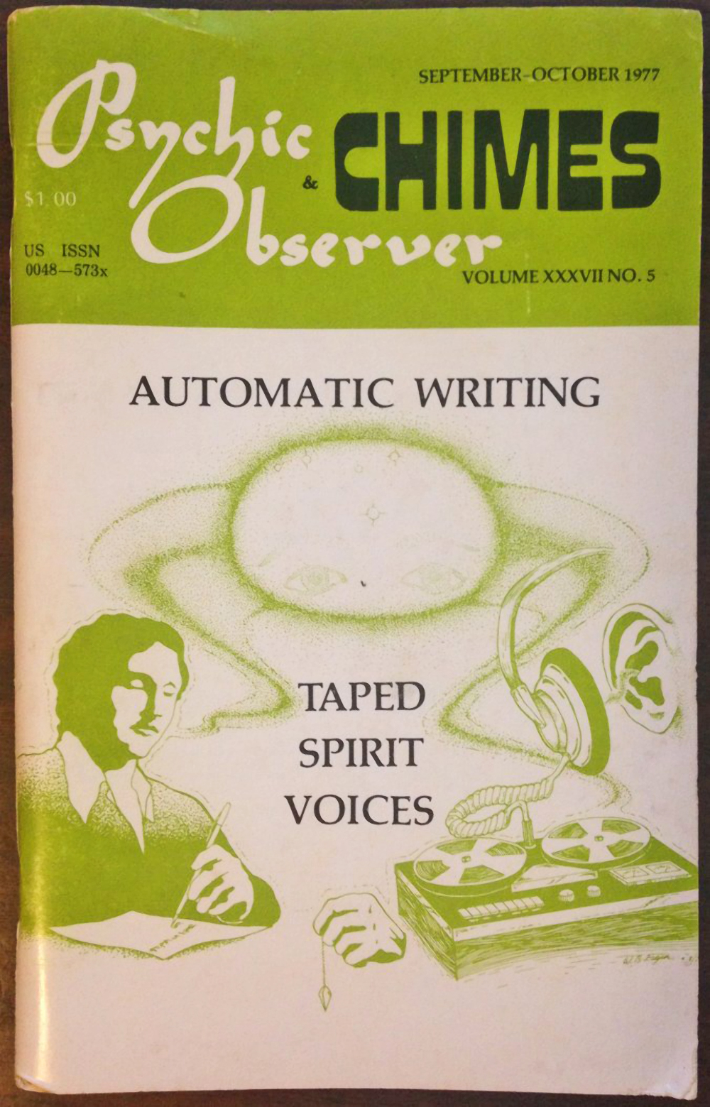 Psychic Observer & Chimes, Vol. XXXVII No.5, Sep–Oct 1977. The cover typeface is Palatino.