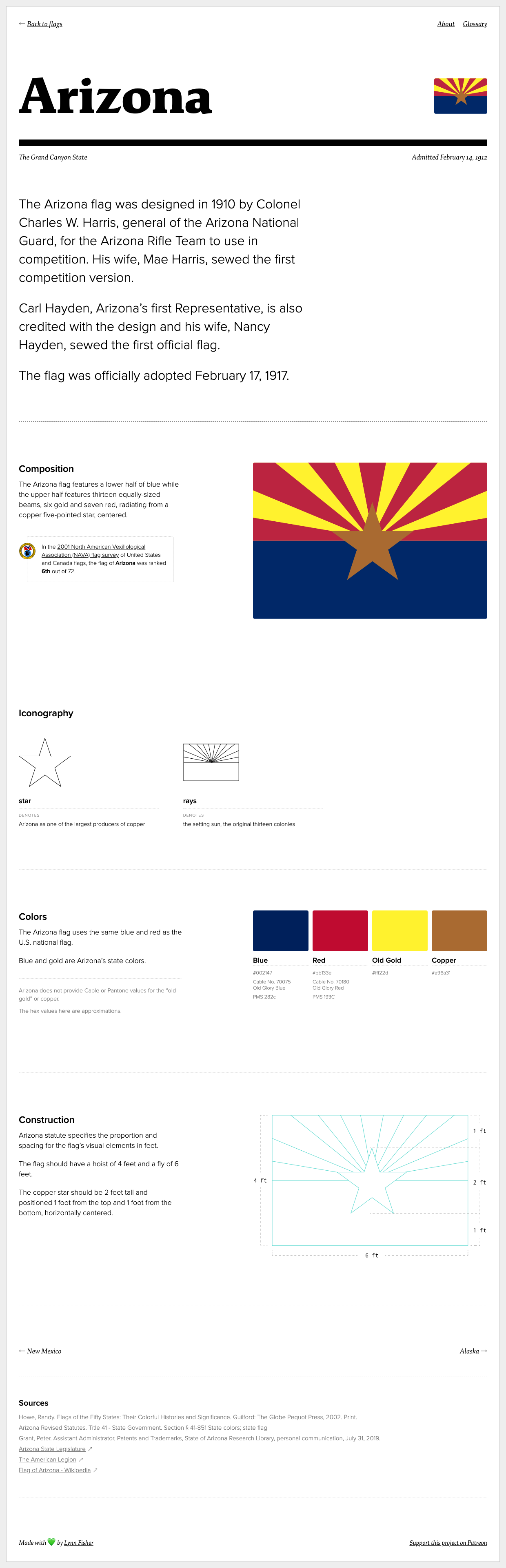 Lynn Fisher’s web project USFlags.Design provides an analytical view of the United States’ flag designs. The site offsets detailed diagrams and informational graphics with airy typography—the academic voice of Study and the informational tone of Proxima Nova. Fisher describes the site as a meeting of “a budding vexillology interest and a love for visual design guides.”
