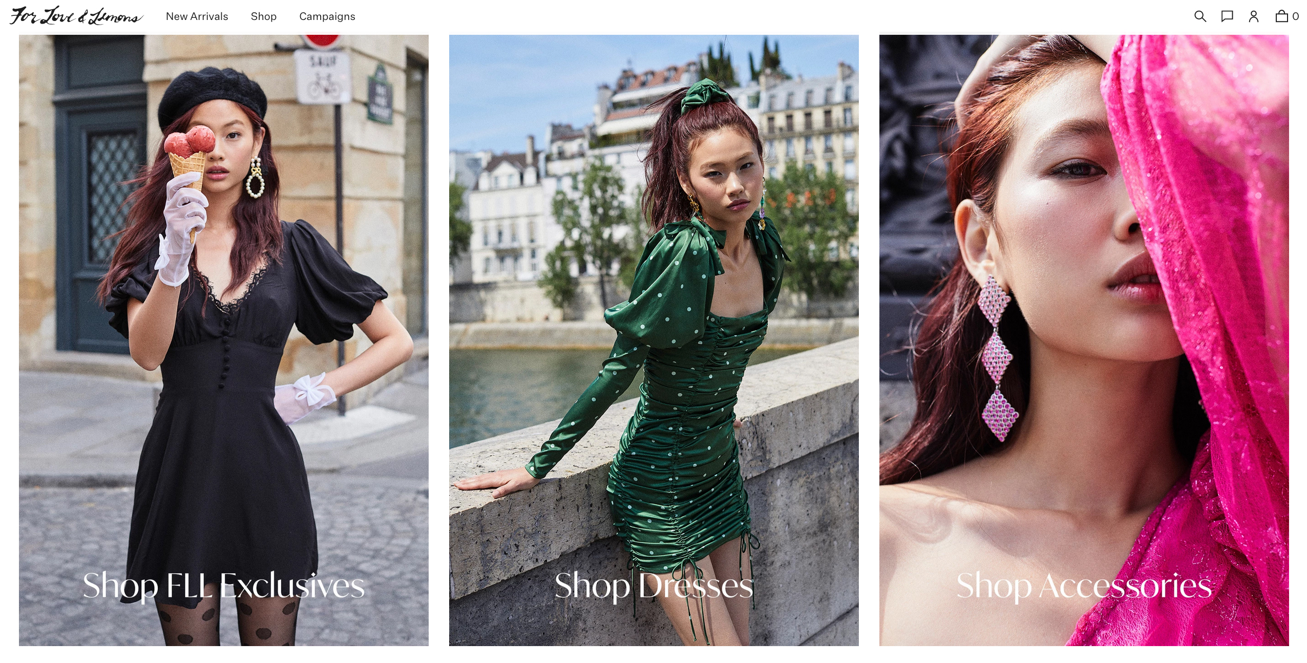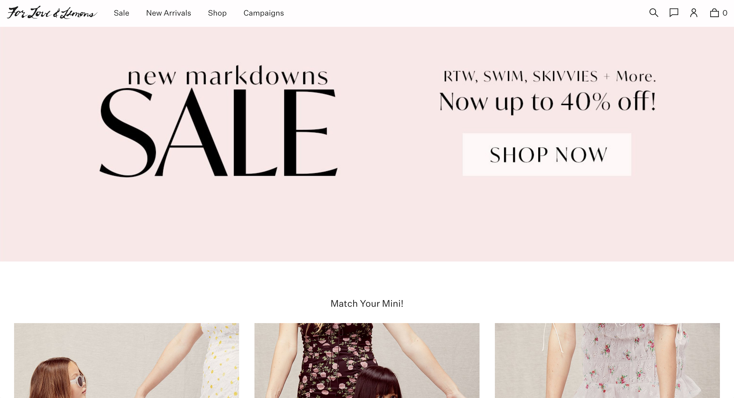 For Love & Lemons is a Los Angeles fashion brand. The website typography brings together IvyMode (The Ivy Foundry) for headlines and banners with Untitled Sans (Klim) for text, menus, and other smaller elements.