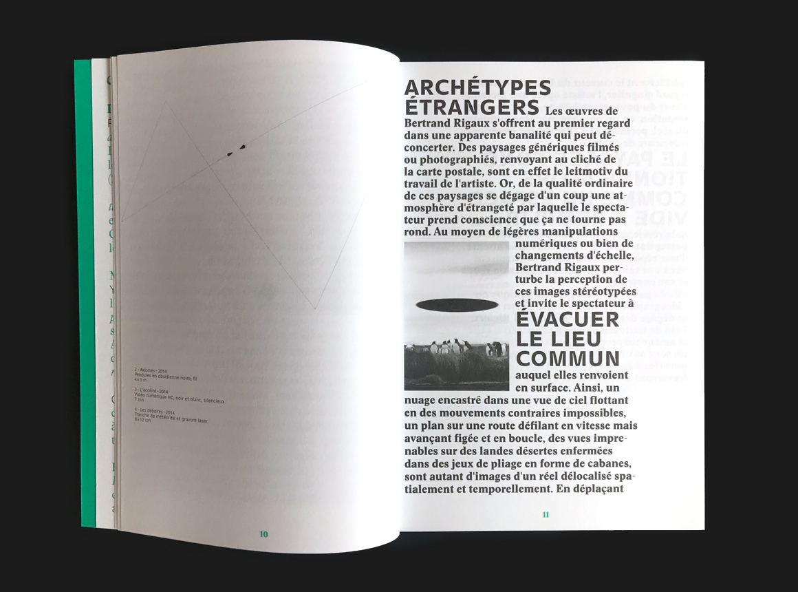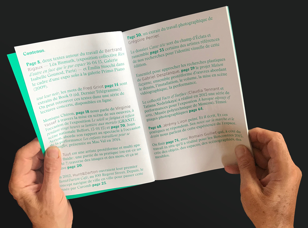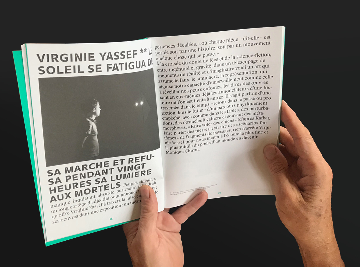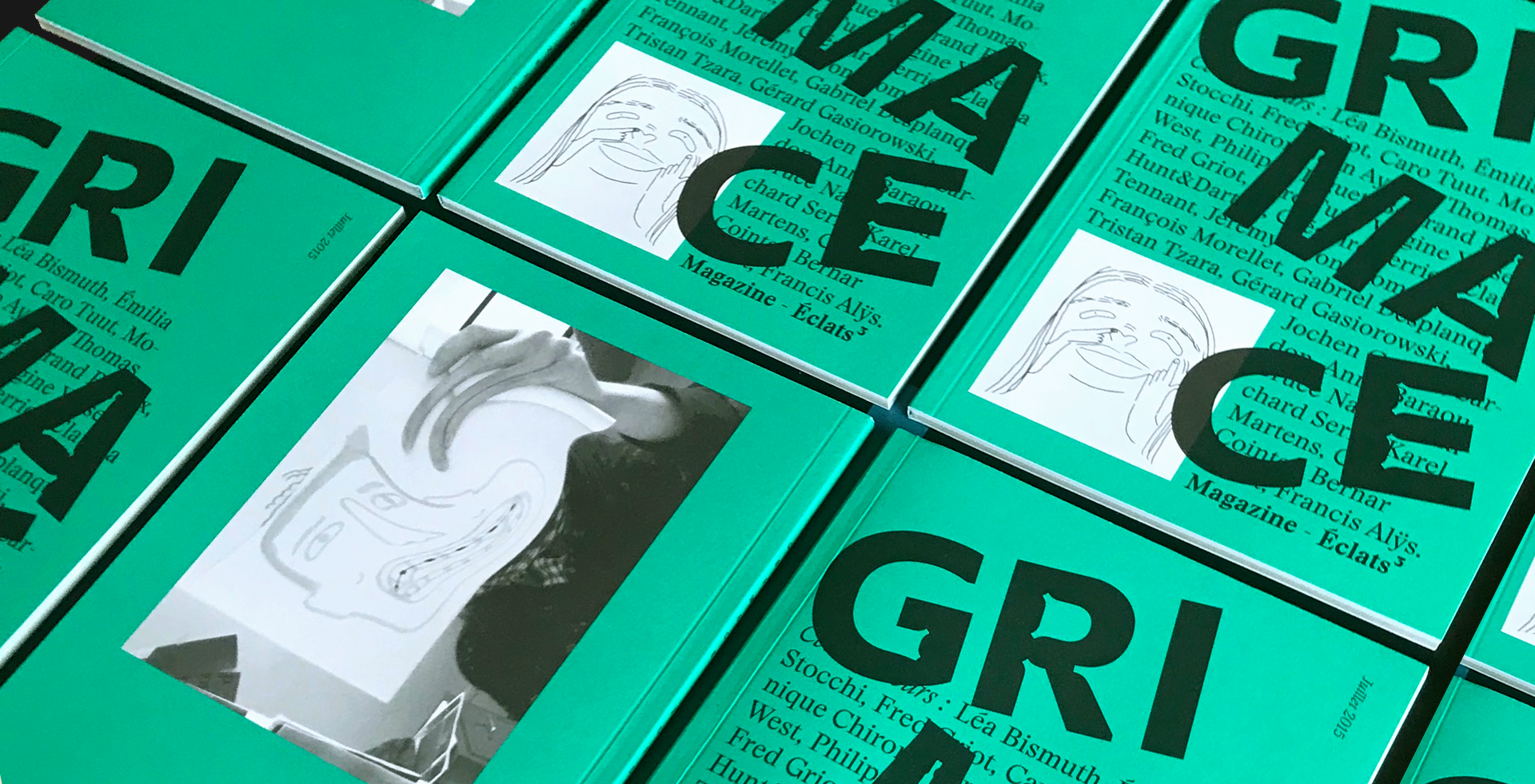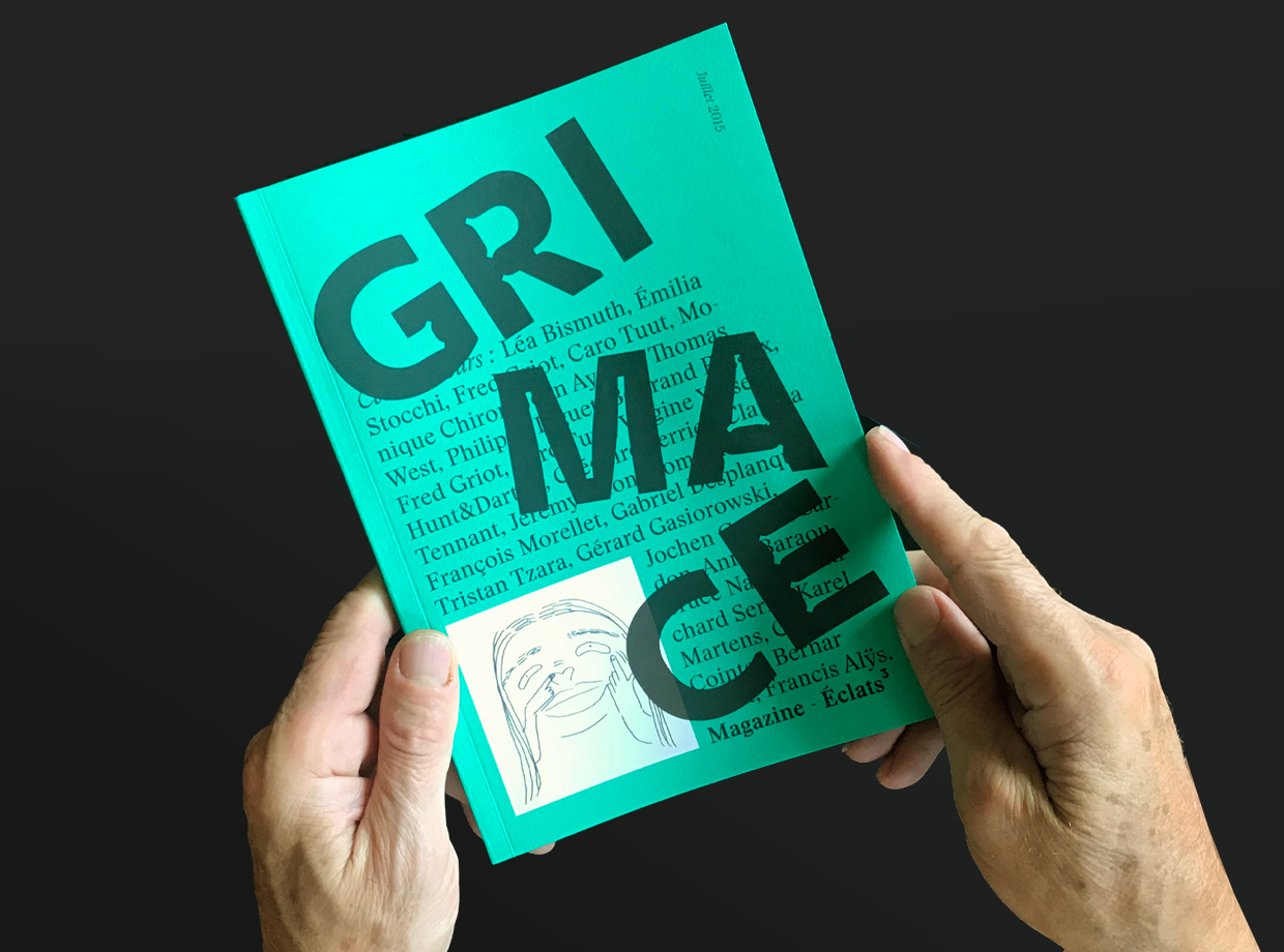 Grimace is a quarterly magazine devoted to contemporary art. The pilot issue was designed by Yann Eouzan and Estelle Petit of Yeep for Édition Éclats / La Nerthe.