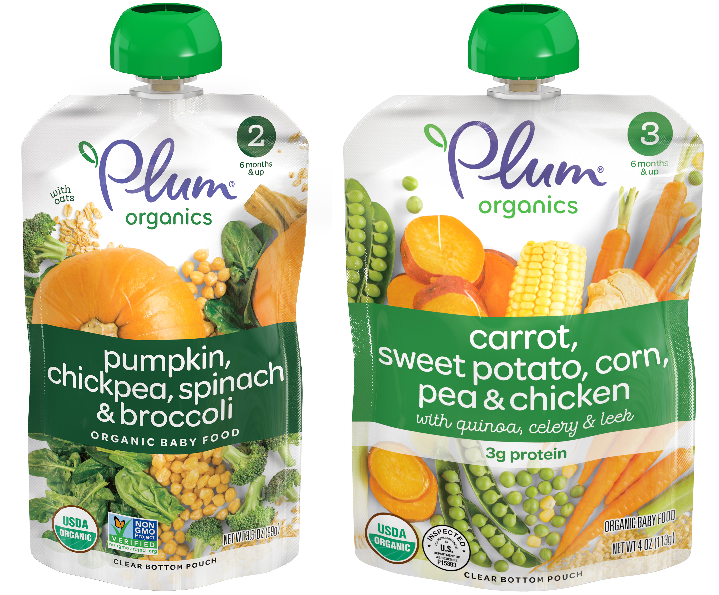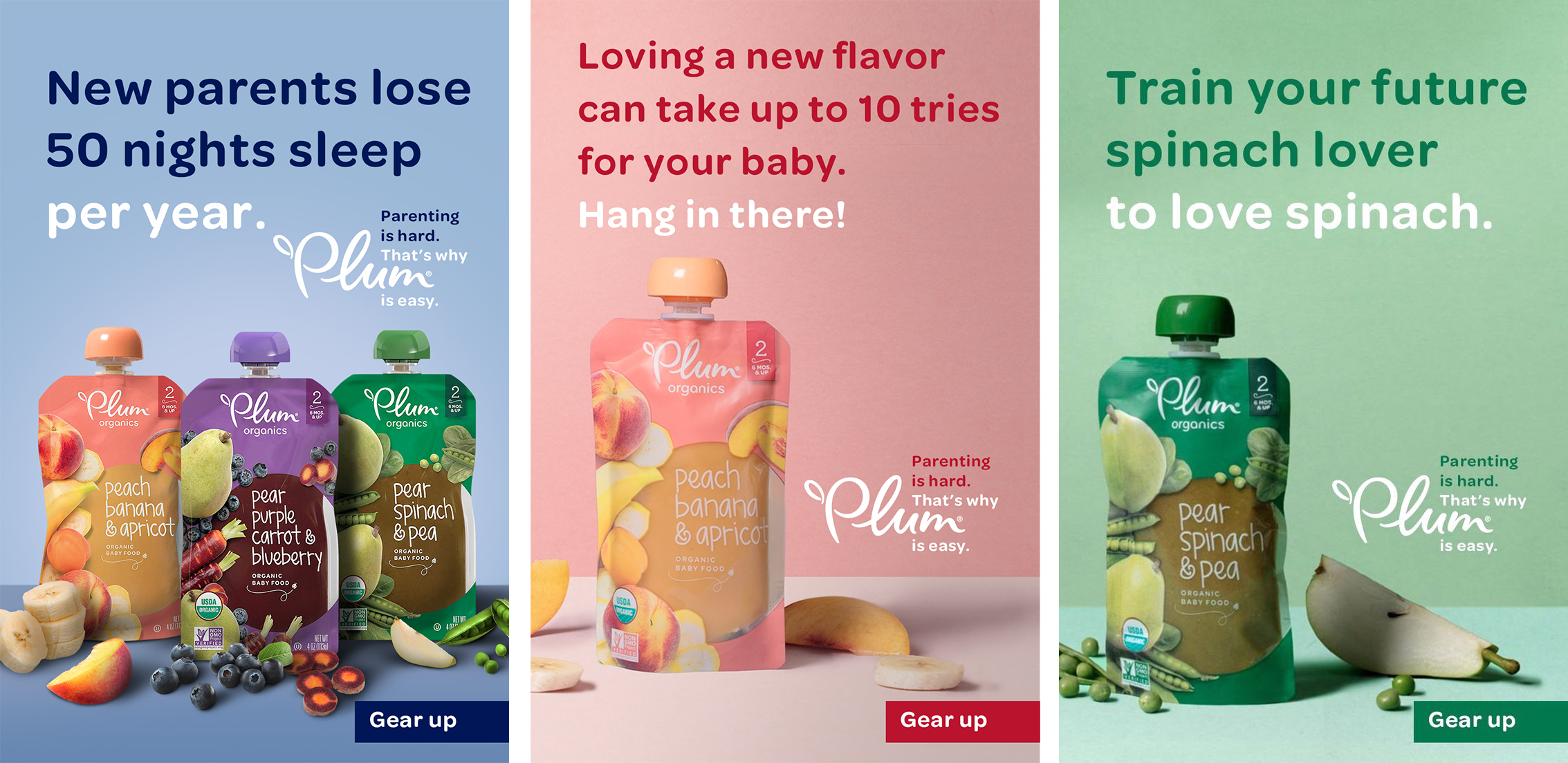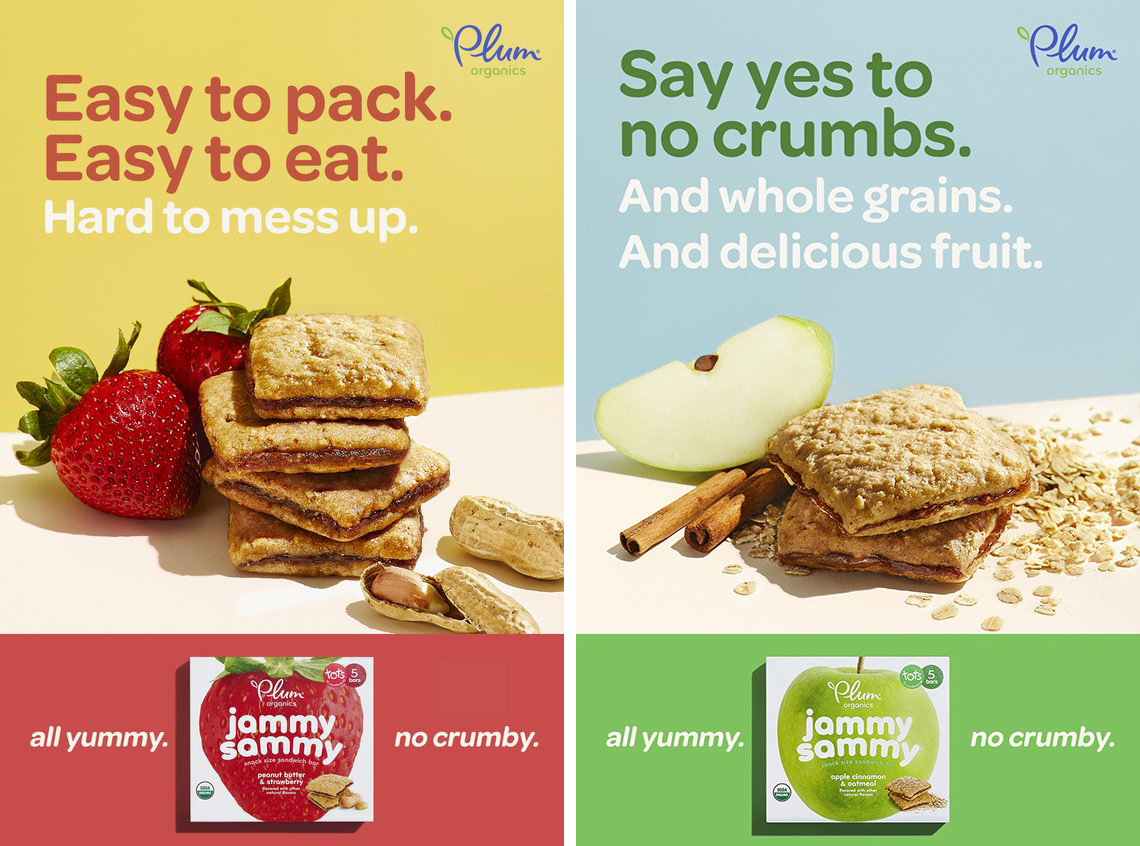 Omnes as used on the portable baby food pouches. For the packaging on the right, it’s paired with Hogar Slab Script. The Plum Organics logo pairs custom script lettering with Bryant.