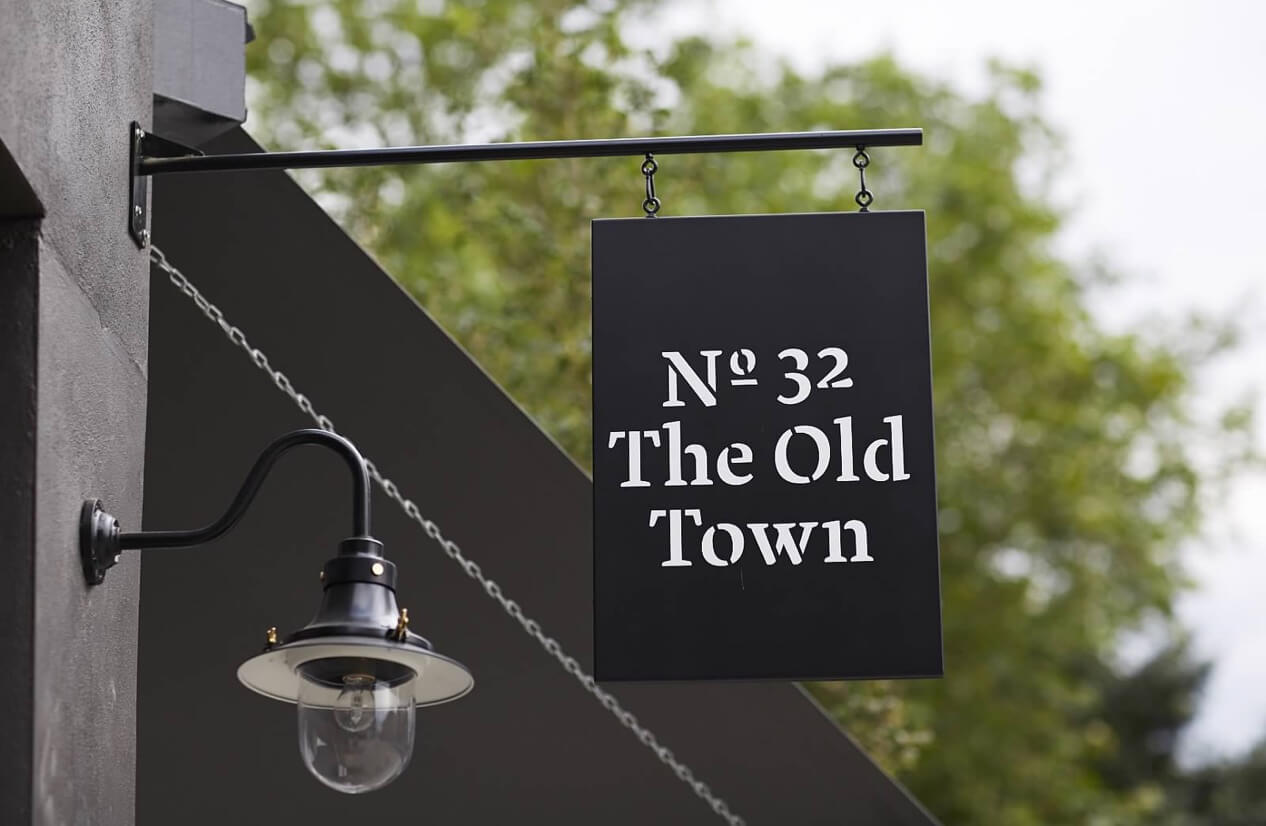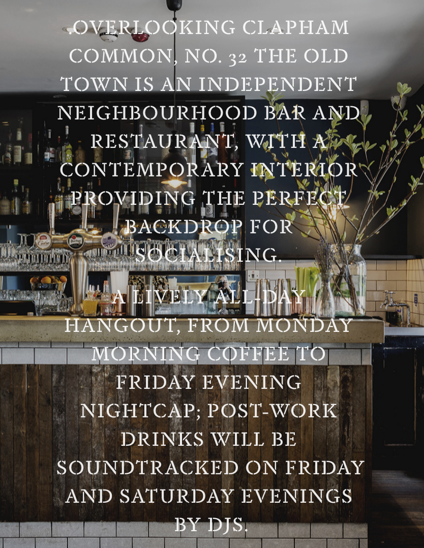 Dapifer Stencil is used for Nº32 The Old Town. The pub in Clapham, London is one of several neighborhood bars conceived by Darwin & Wallace together with Without.