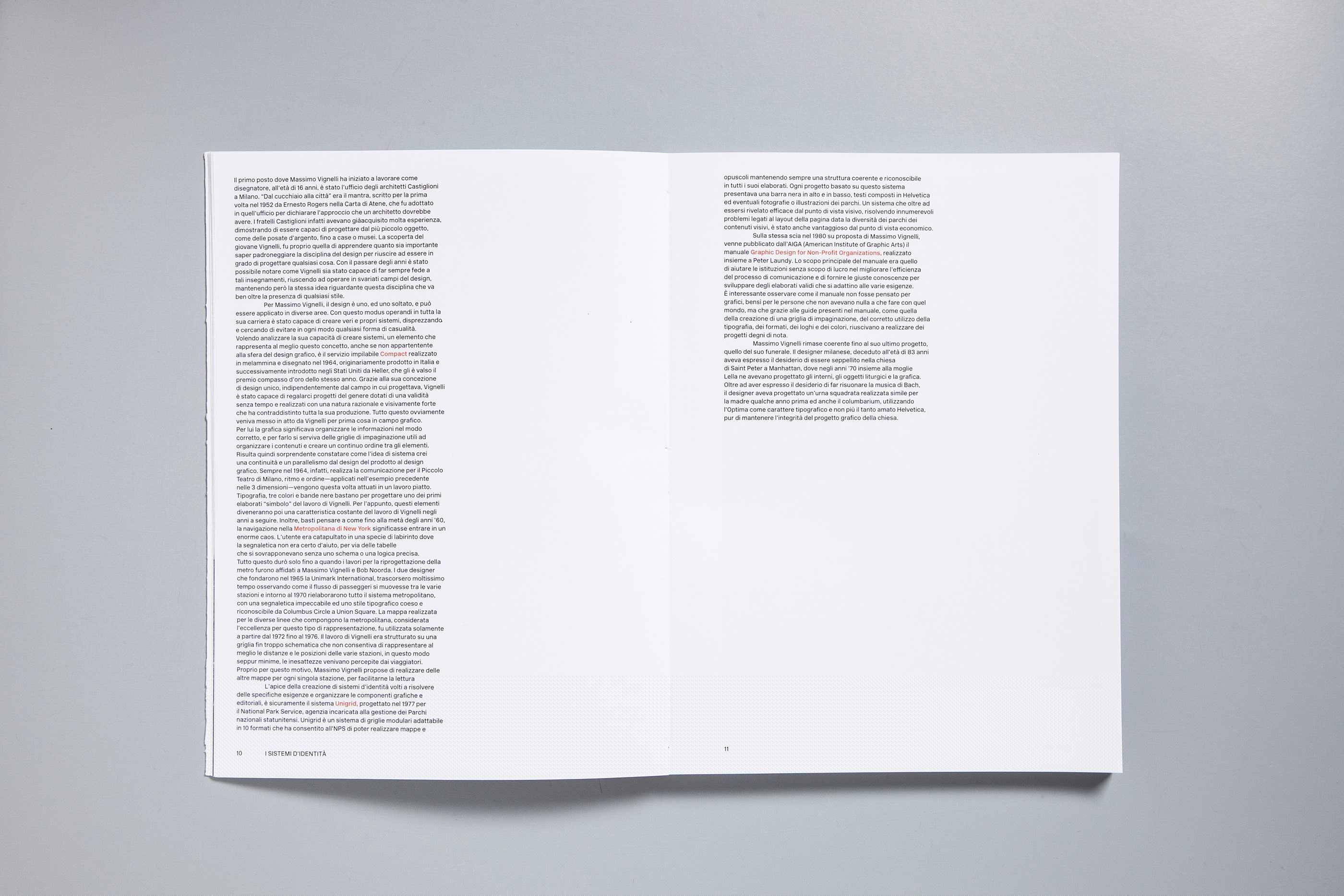 This publication (“Massimo Vignelli. The rational design from brand to publishing”) intends to focus on the continuity of Vignelli in the different areas of design, the reasoning in designing is evident in any of his projects, from the design of everyday products to identity manuals. It is important to underline this link, in order to investigate what Massimo Vignelli did for design and, in particular, for Italian editorial design.