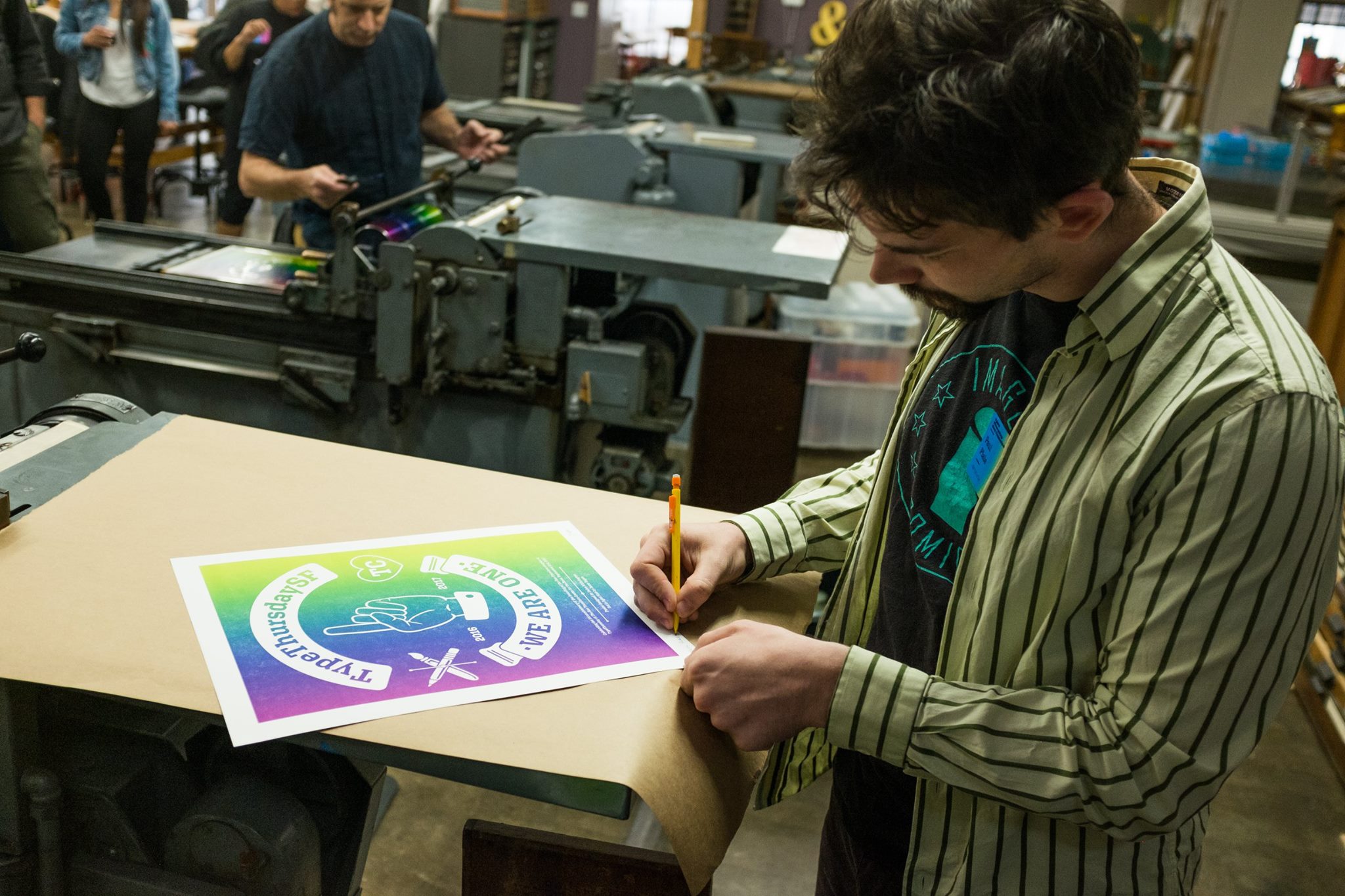 TypeThursdaySF: We Are One Contributed by XYZ Type on Oct 17th, 2019. Artwork published in September 2017. Source: twitter.com License: All Rights Reserved. Delve Withrington’s 2017 poster celebrating the first anniversary of Type Thursday San Francisco is set entirely in Aglet Slab, and letterpress printed with a split fountain effect. License: All Rights Reserved. Source: twitter.com License: All Rights Reserved. Source: www.facebook.com License: All Rights Reserved. Source: www.facebook.com License: All Rights Reserved. Typefaces More about Aglet SlabGet Aglet Slab Formats Posters/Flyers (5834) Topics Event (3266) Graphic Design (3030) Designers/Agencies Delve Withrington (1) Tagged withType Thursday (2)gradients (850)letterpress (265)manicules (☛☞) (100)rainbows (212)rainbow printing (52)type on a curve (1141)process (187)ribbons (71)hearts (180)pencils (53)brushes (6) Artwork location United States (10002) San Francisco (343) In SetsRetro (Alexander Kim) (60)Tipos (Fernanda Soto) (52) Post a comment Name Email – will not be published Website Your response Submit Comment More Aglet Slab in use Merosch2020ReprovinciContributed by XYZ Type DesignEd Uganda2018Penina Acayo LakerAudrey WesternContributed by XYZ Type Staff Pick Cărturești2022unknownContributed by XYZ Type Staff Pick Sponsor More in Event Swiss Design Awards 20232023EurostandardContributed by Maxitype Staff Pick Small Talks2025Small EditionsIsobel ChiangContributed by Small Editions Serbian Gaming Industry Report for 2024c. 2024Jelena LugonjaTriforce StudioContributed by Jelena Lugonja Live Magazine No. 2, “DesignThinkers 2019”c. 2019FrontierContributed by Brian Sholis More in Posters/Flyers Reziume poster2019Jogaila JurgelisContributed by Jogaila Jurgelis Wolfra Alpenschorle packaging2020Zeichen & WunderContributed by TypeMates Staff Pick George Rouy: Squeeze Hard Enough it Might Just Pop! exhibition posters2018Jacob WiseContributed by WELTKERN® Typefaces Staff Pick Type Follows Identity by Paul Eslage2022Paul EslageContributed by Paul Eslage More Fonts In Use Asserting Yourself1976unknownContributed by Benjamin Shaykin Staff Pick Mediterraneo Blues by Iain Chambers (Tamu Edizioni)2020Greg OllaContributed by CAST Staff Pick Bobby Timmons – Soul Food album artc. 1966Don SchlittenContributed by Florian Hardwig Staff Pick The Operas of Verdi by Julian Budden1973Tony GeddesContributed by Florian Hardwig Staff Pick