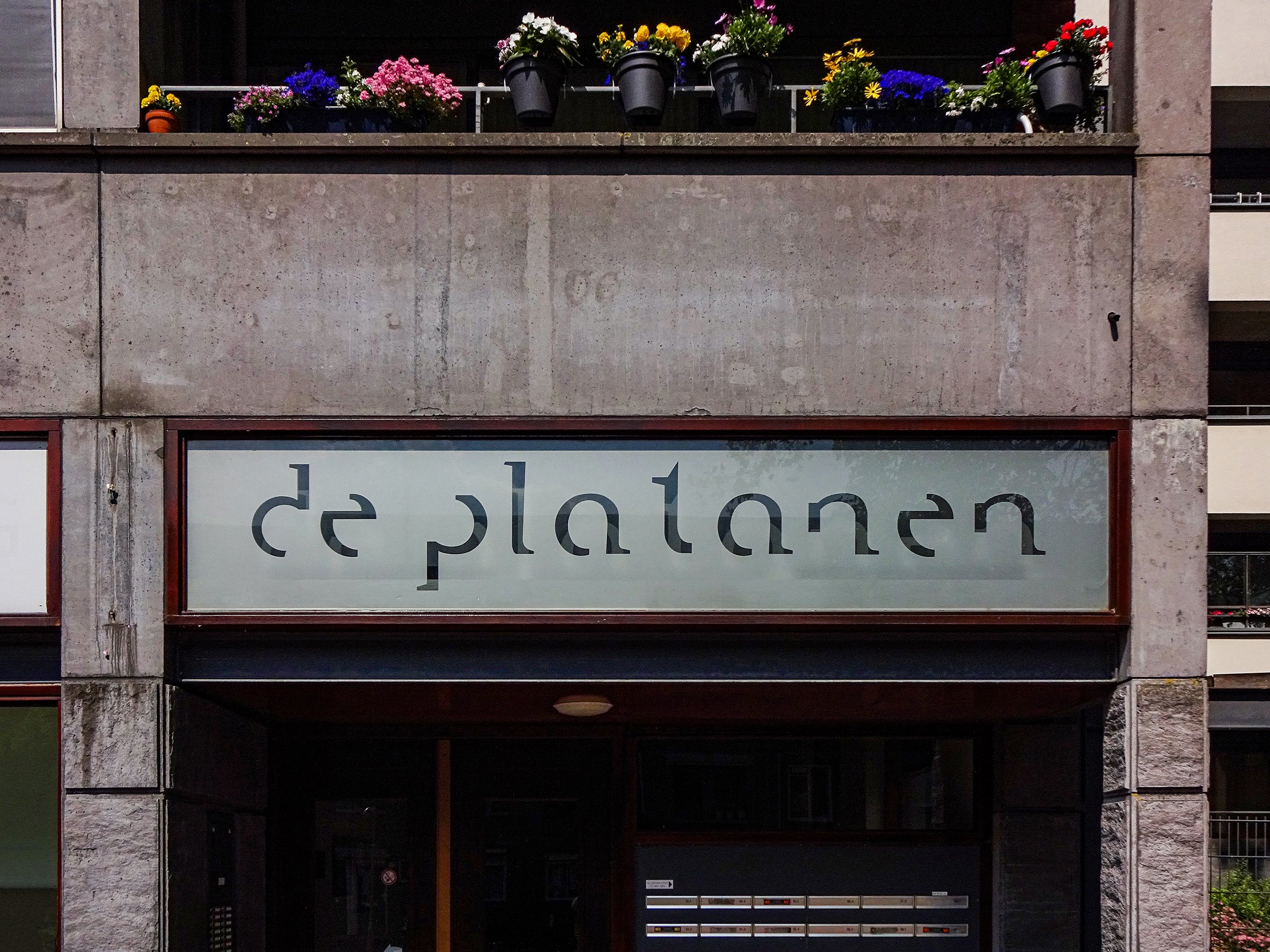 De Platanen (“The plane trees”) is a building on Weerdjesstraat in Arnhem, the Netherlands. It was built by Geurst & Schulze in 1994–1998. Edit was released in 1997. Assuming that the sign is as old as the building, this might qualify as an early use.