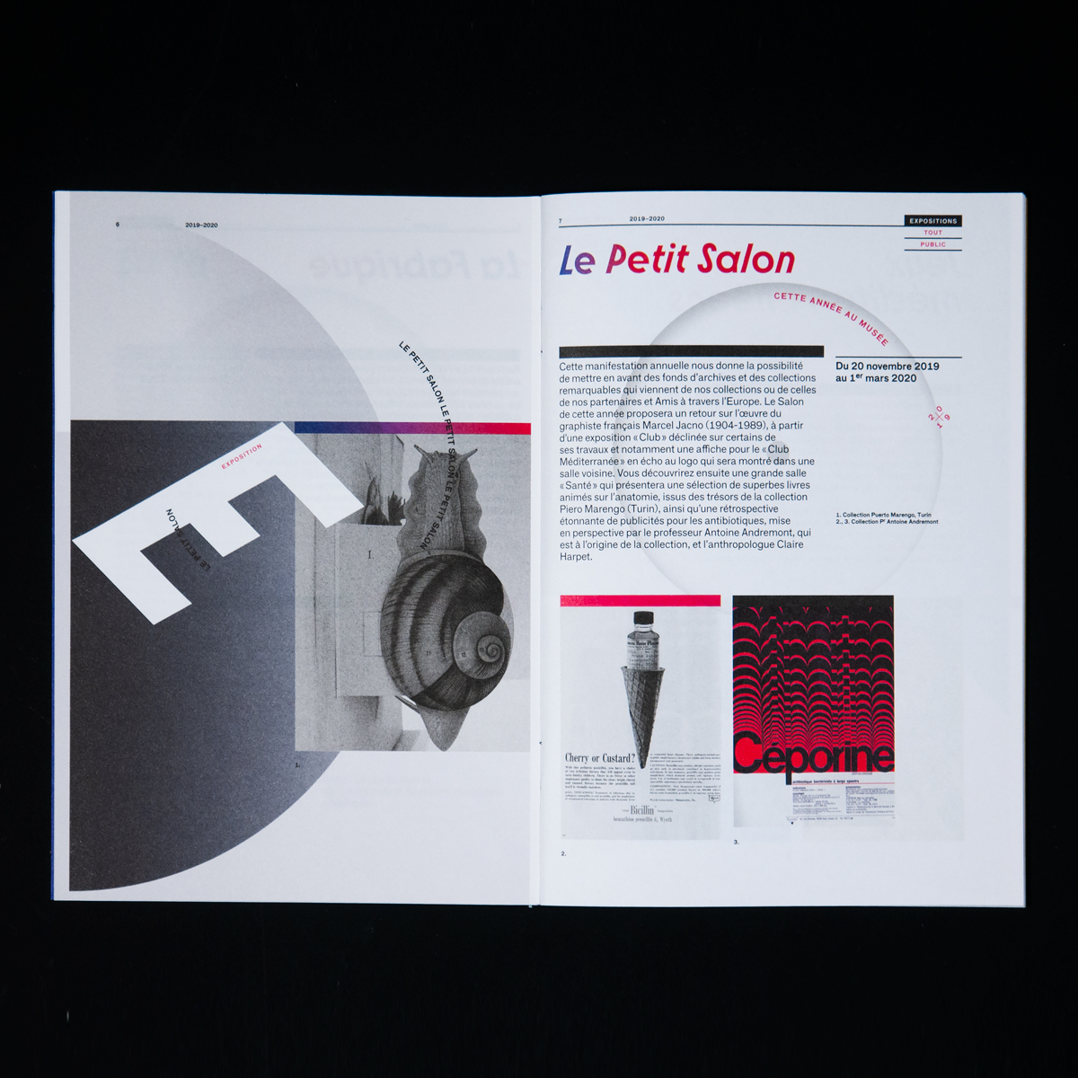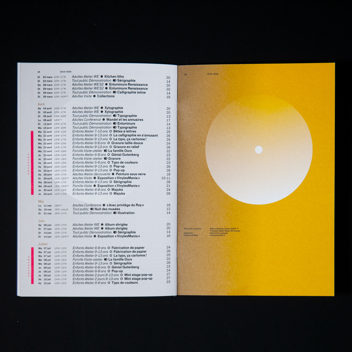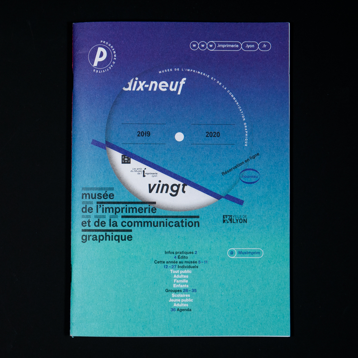 For the 2019–2020 program of the Musée de l’imprimerie et de la communication graphique (“Museum of Printing and Graphic Communication”) in Lyon, Bureau 205 made early use of the typeface Molitor, designed by Matthieu Cortat and to be published by 205TF in the fall of 2019. The typeface F Grotesk, designed by Radim Peško and used here for body text, is part of the museum’s visual identity since 2013.