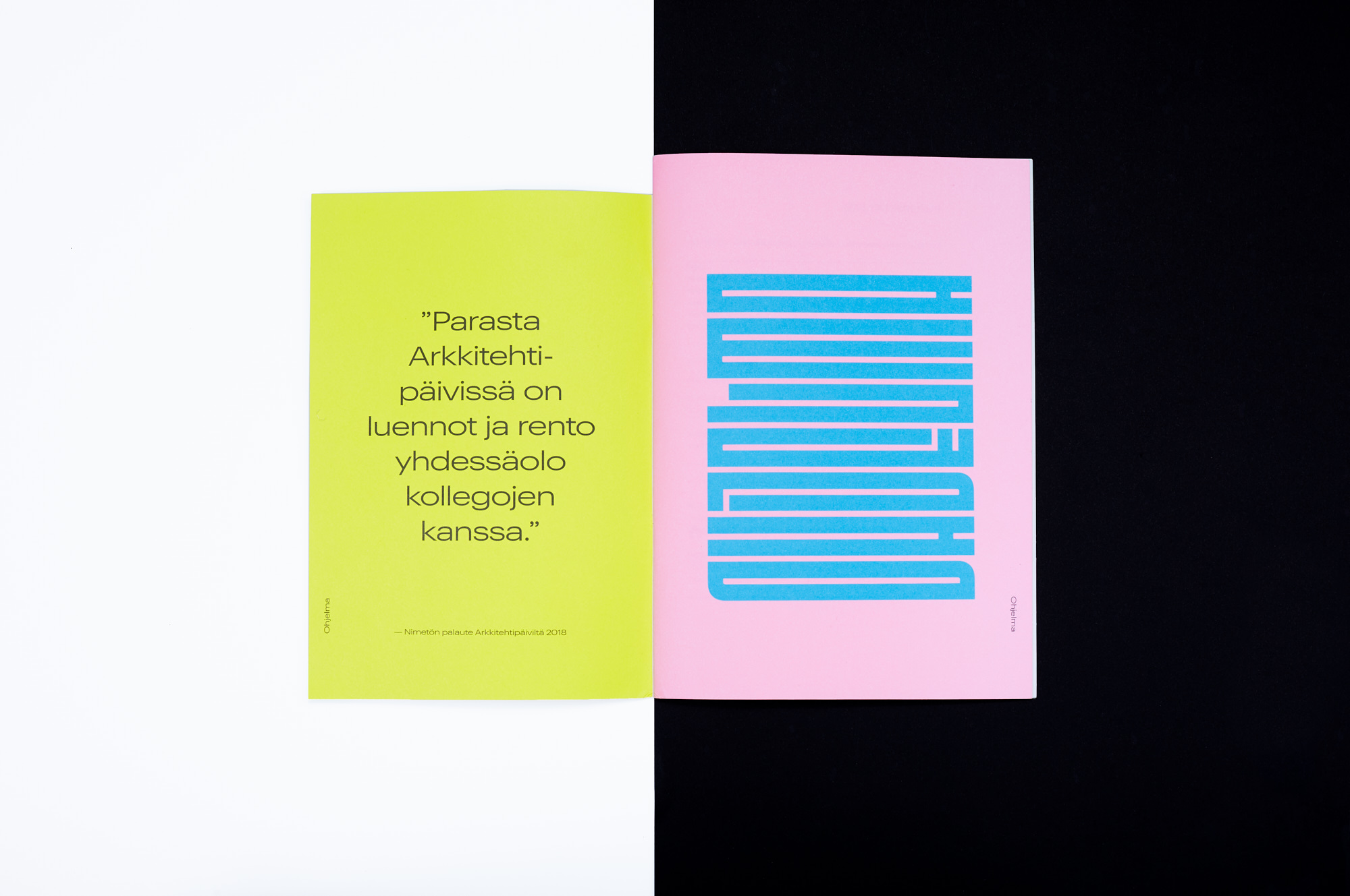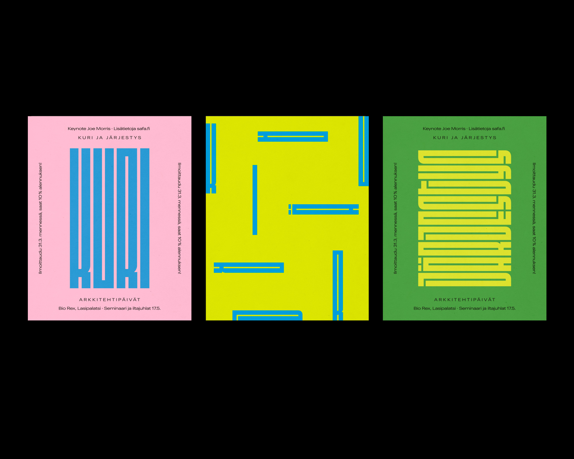 The theme of the 2019 event was Kuri ja järjestys (Discipline and Order). I really loved how the Fit typeface made the words kuri (discipline) and järjestys (order) look like brutalist architecture and a condensed city, which made it a perfect match for the branding concept.