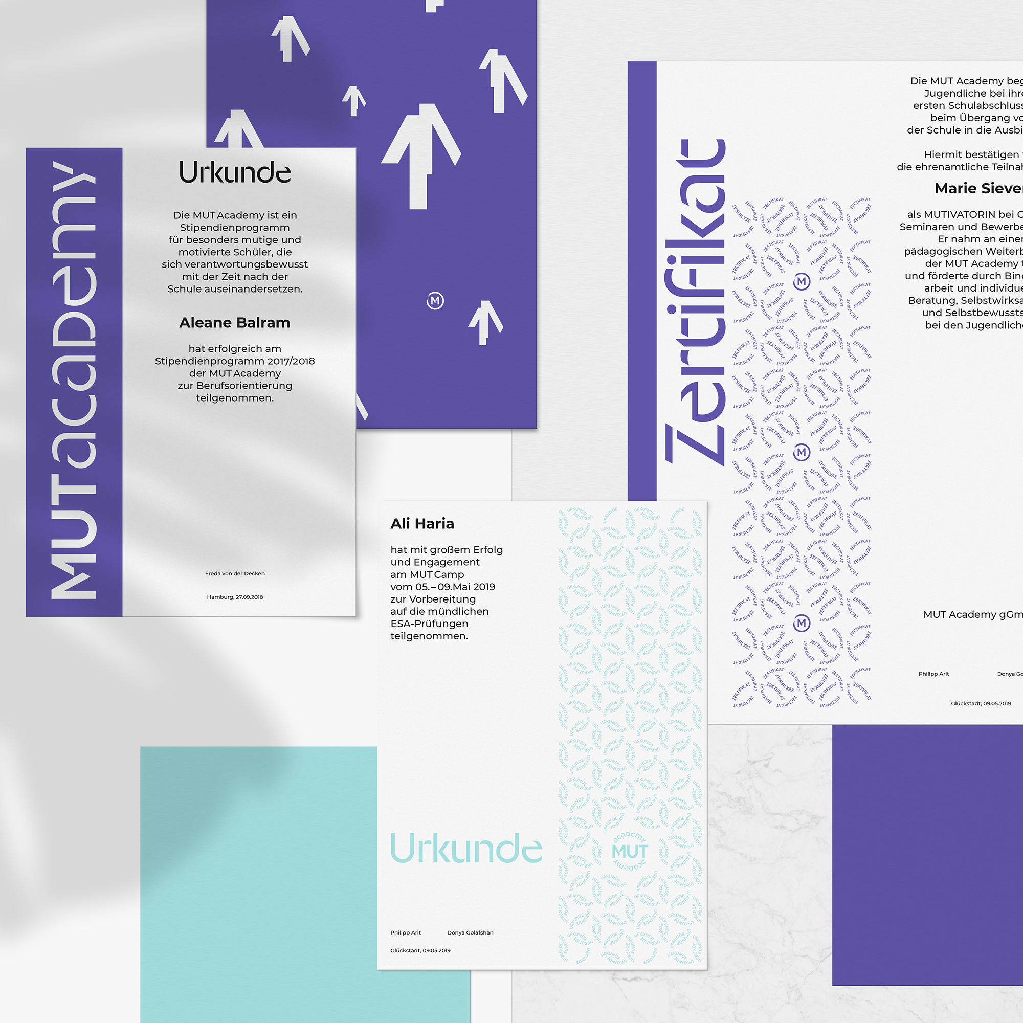 Full corporate redesign for MUT Academy – a Hamburg based institution focussed on encouraging students to gain the first and second graduation, and to find an apprenticeship training position longterm. Mut is the German word for “courage” or “bravery”.