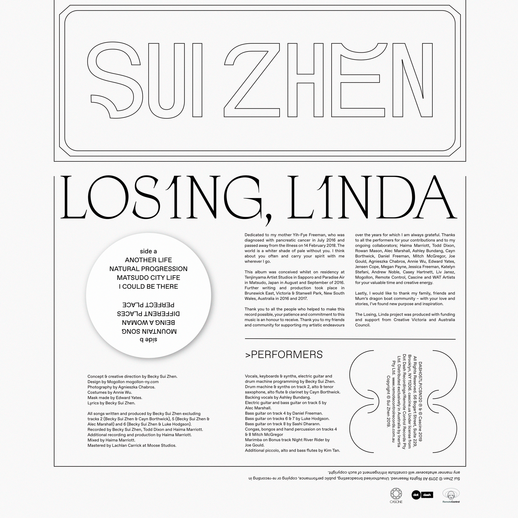 Mogollon Studio designed the complete music packaging and promotion for the amazing musician and artist Sui Zhen. The new album is called Losing, Linda. We created the wordmark “SUI ZHEN” and all the graphic alphabet.