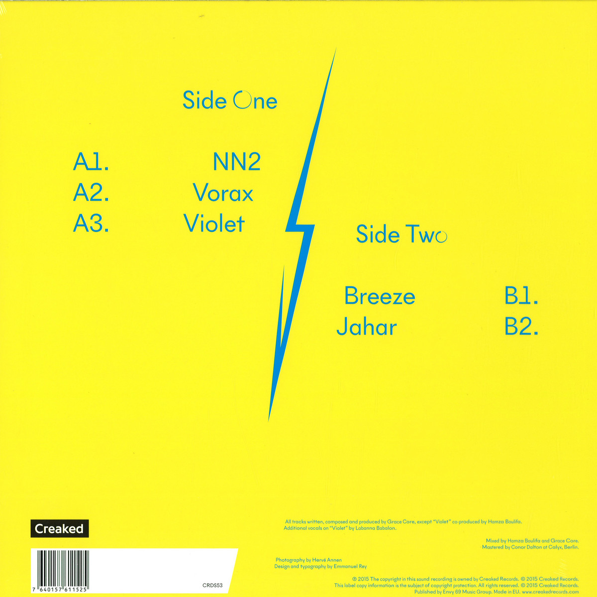 KRSNA started out as a custom version of NewPanam Skyline (formerly NewParis Skyline), made for two vinyl record sleeves, namely KRSNA & KRSNA RMX, by Geneva-based musician Grace Core. This experimental typeface abandons the convention of a continuous baseline and introduces a three-storey space where the letters can sit at the top, center or bottom, with the remaining space filled by bars and spikes. The resulting word images are captivating patterns with logo-like qualities.