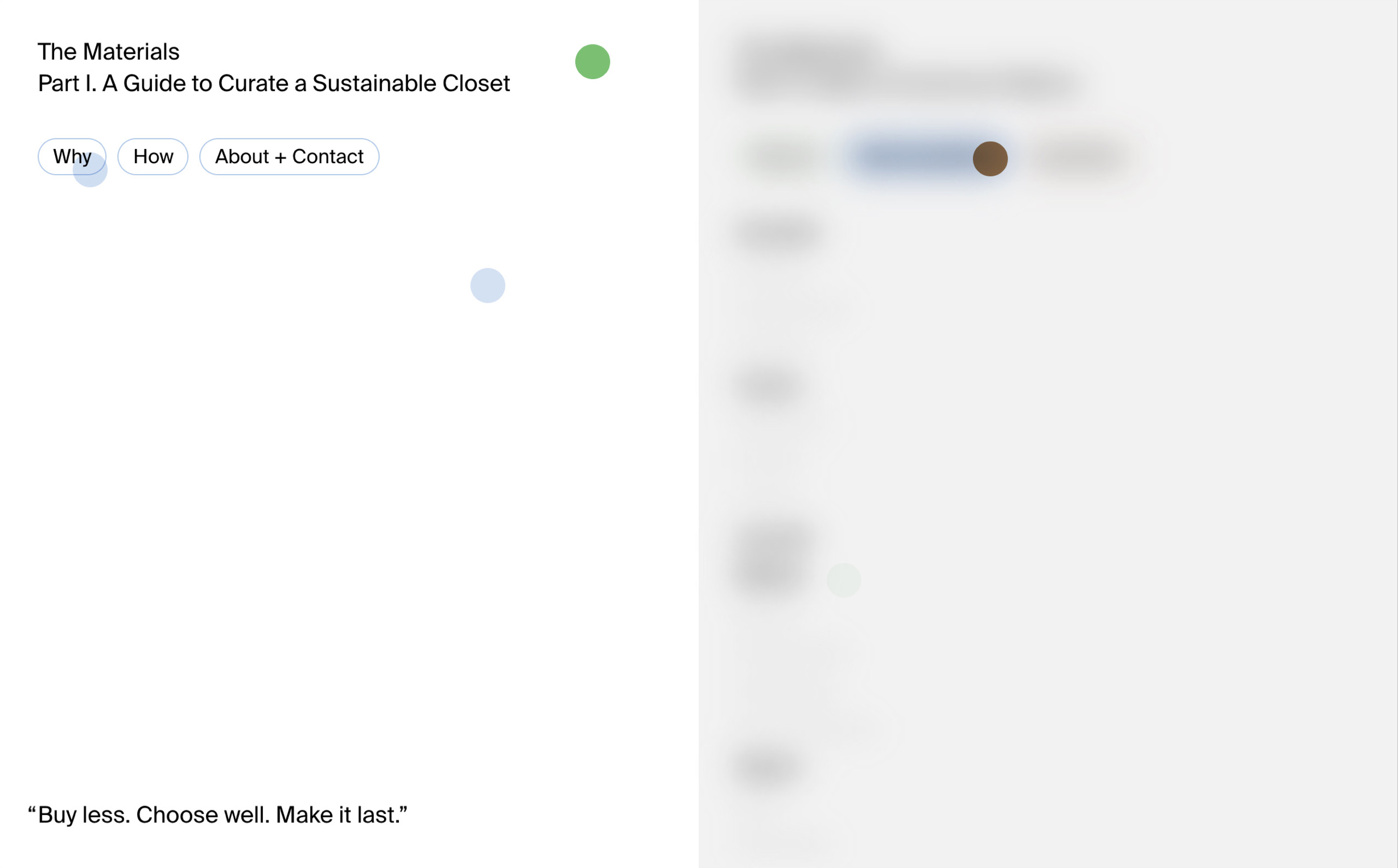 The Materials is a website I created to promote the concept of “slow fashion”, an emerging approach towards sustainable fashion in order to reduce our carbon footprints.