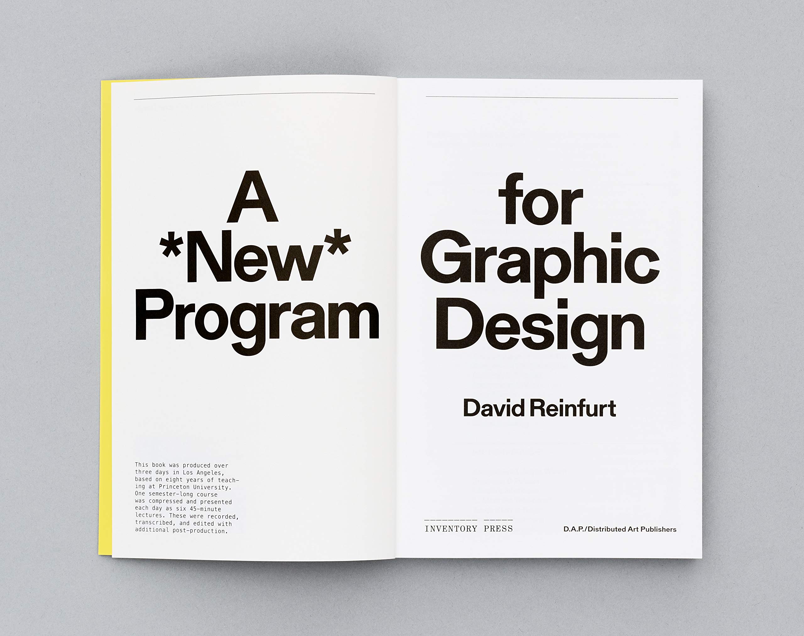 Gerstner-Programm FSL in use throughout the book A *New* Program for Graphic Design by David Reinfurt, co-published by Inventory Press and Artbook. Foreword by Adam Michaels and Introduction by Ellen Lupton.