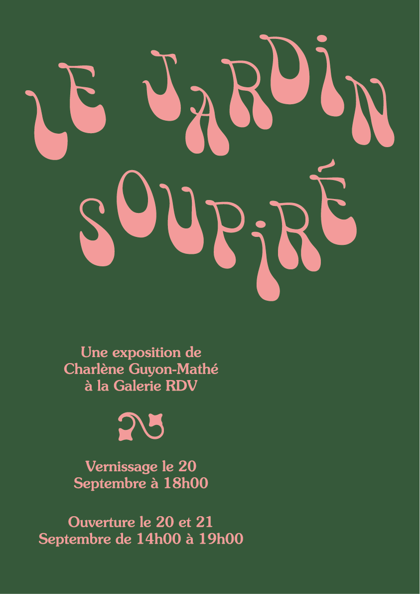 The poster of the exhibition Le Jardin Soupiré is made with Victor Moscoso as the titling typeface and ITC Souvenir for smaller text.