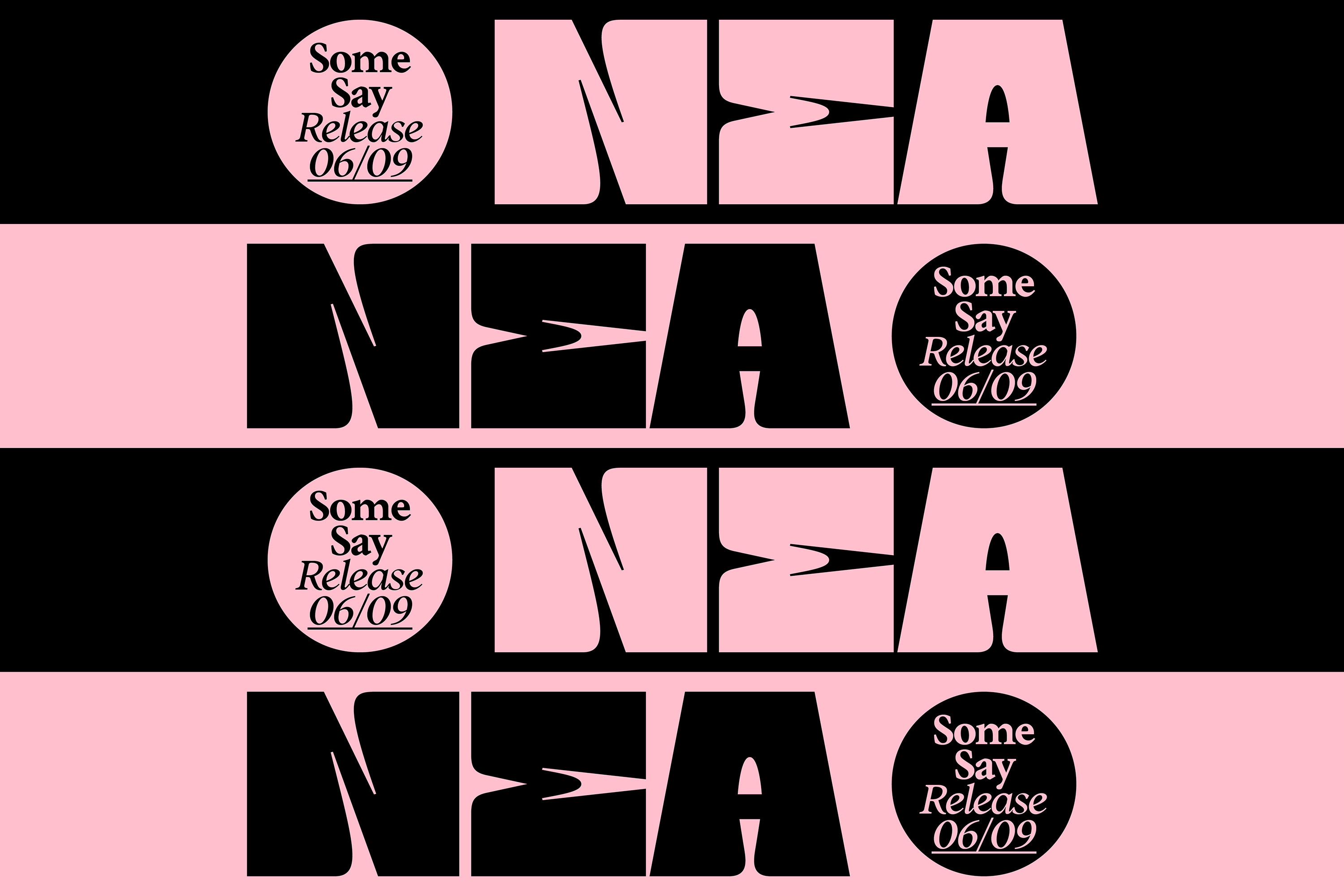 Commissioned by music label Milkshake/Sony Music, Gregory Page designed the visual identity for their newly signed artist Nea (Linnea Södahl). Among the produced elements: a logo with custom bold letters; a tape logo system that can be applied on everything, everywhere (campaigns, merchandising, apparel …); artwork design and music video titles for the first track “Some Say”. The serif in use is Inferi, designed by Matthieu Salvaggio and available from by Blaze Type.