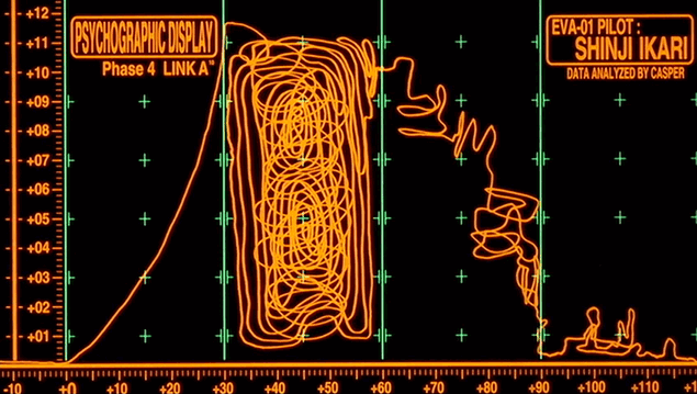 Established in title cards, this combination of Matisse EB and all-caps Helvetica soon bled into various aspects of Evangelion, most notably the HUD user interfaces in NERV. Although it would be possible to attribute the mechanical compression to technical limitations or typographic ignorance, its ubiquitous occurrence did evoke haste and, at times, despair—an emotional motif perfectly suited to a postapocalyptic story with existentialist themes.