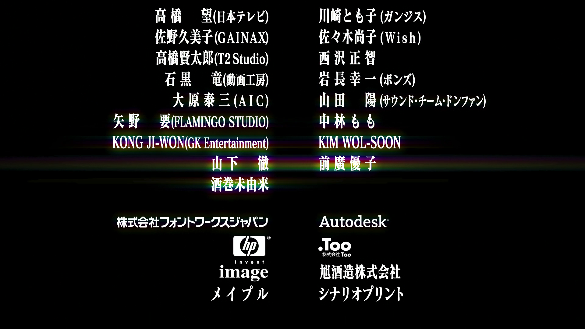 Fontworks was officially credited as the font vendor in Evangelion 2.0’s end credits. (Fontworks appears just above HP.)