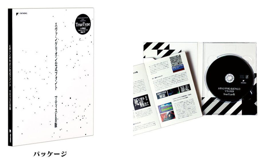 Promoting Matisse EB as the “official font of Evangelion,” Fontworks also sells a special disc package containing the two versions of Matisse EB alongside a complimentary booklet. Note that Fontworks does not authorize this version of Matisse EB for commercial use—fan art only!