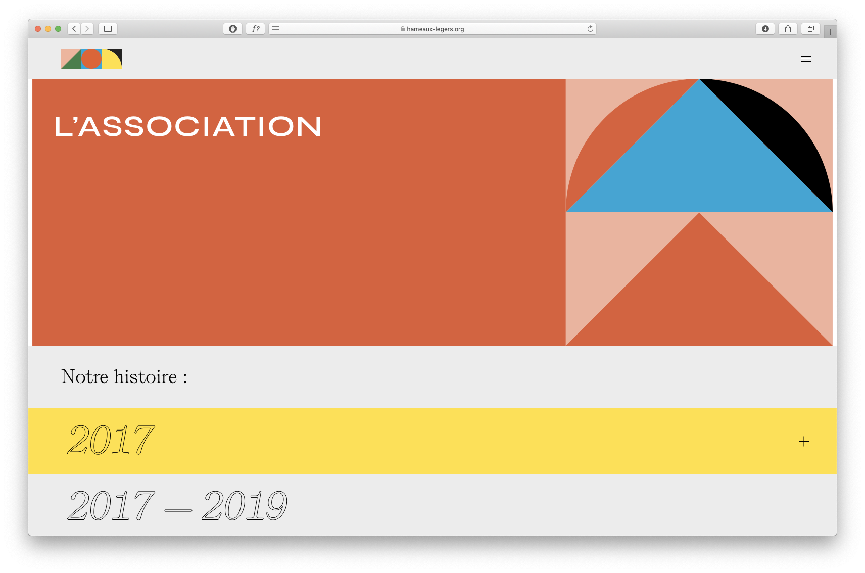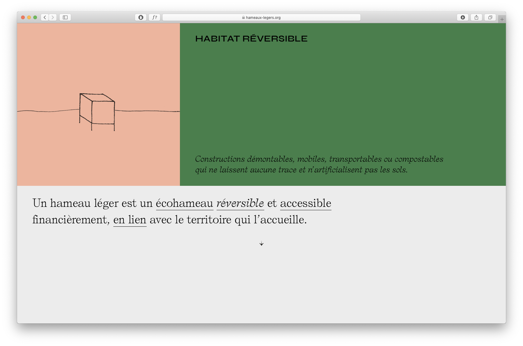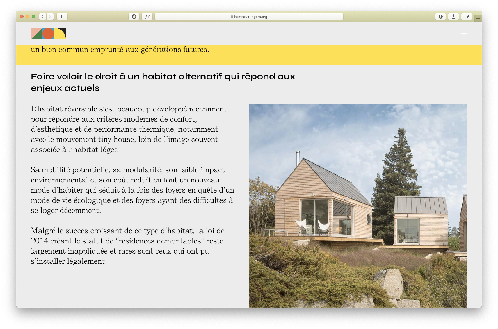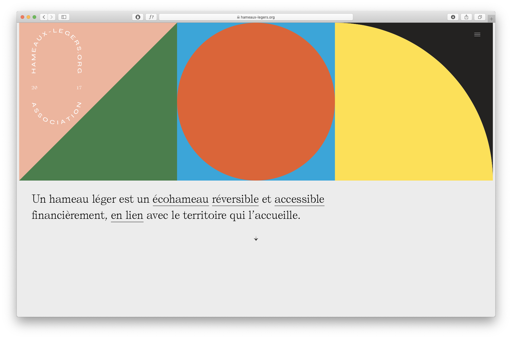 Hameaux Légers is an association that works to facilitate the development of eco-friendly and financially accessible hamlets, in partnership with the territories that host them. The identity of the association designed by Aristote Truffaut use Self Modern and Syne Bold as the main typefaces.