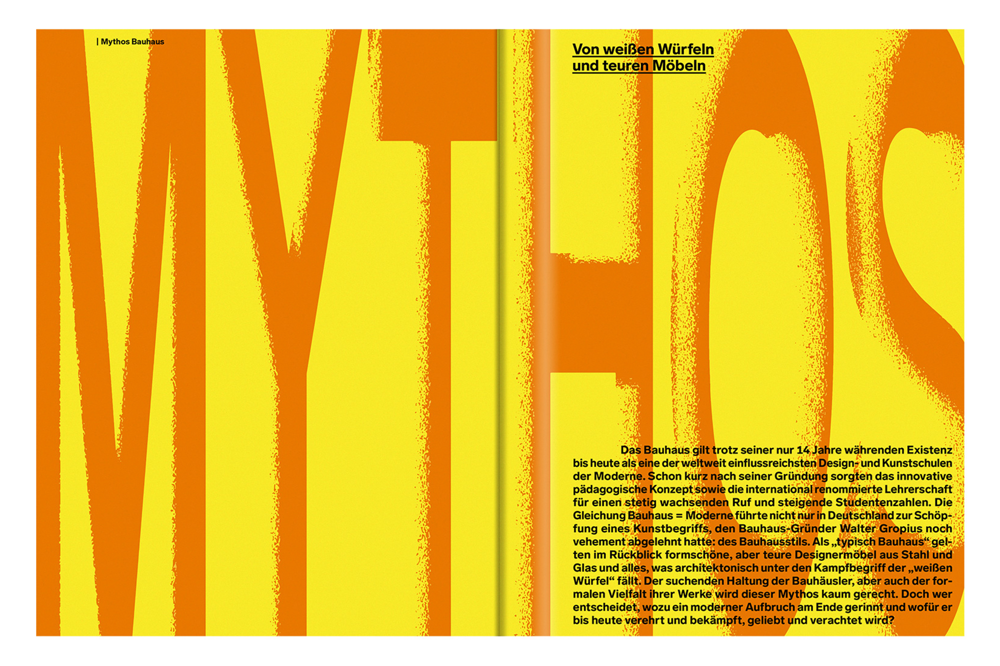 Brands need design and language to breathe. The magazine bauhaus now shows how we network both with each other. Our designers and editors worked closely on the dramatic staging of stories, formats and visuals from the very first minute of the project. But we didn’t think in trades, we thought in roles.