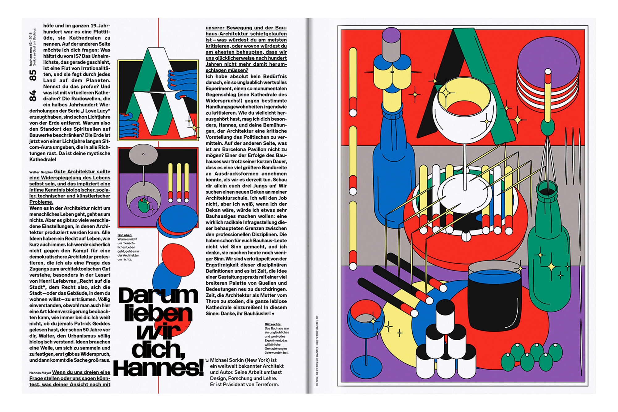 Designers developed content, editors worked on the bauhaus now look. Together they built up a network of authors and artists who shared our idea of a modern Bauhaus magazine. This becomes visible through the depth of the details: the typography and typesetting reflect the anchor theme in each of the three editions. Despite their individuality, the magazines form one entity in terms of content and visuals. Photography, graphics and journalistic formats don’t steal each other’s show but rather stick up for each other.