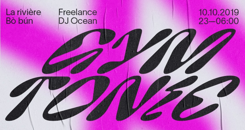 Poster design by Bentleyout for the fourth edition of Gym Tonic at Le Bourg, Lausanne, featuring DJ Ocean back-to-back with the local After Boys Club (La Rivière, Bò Bún, Freelance):