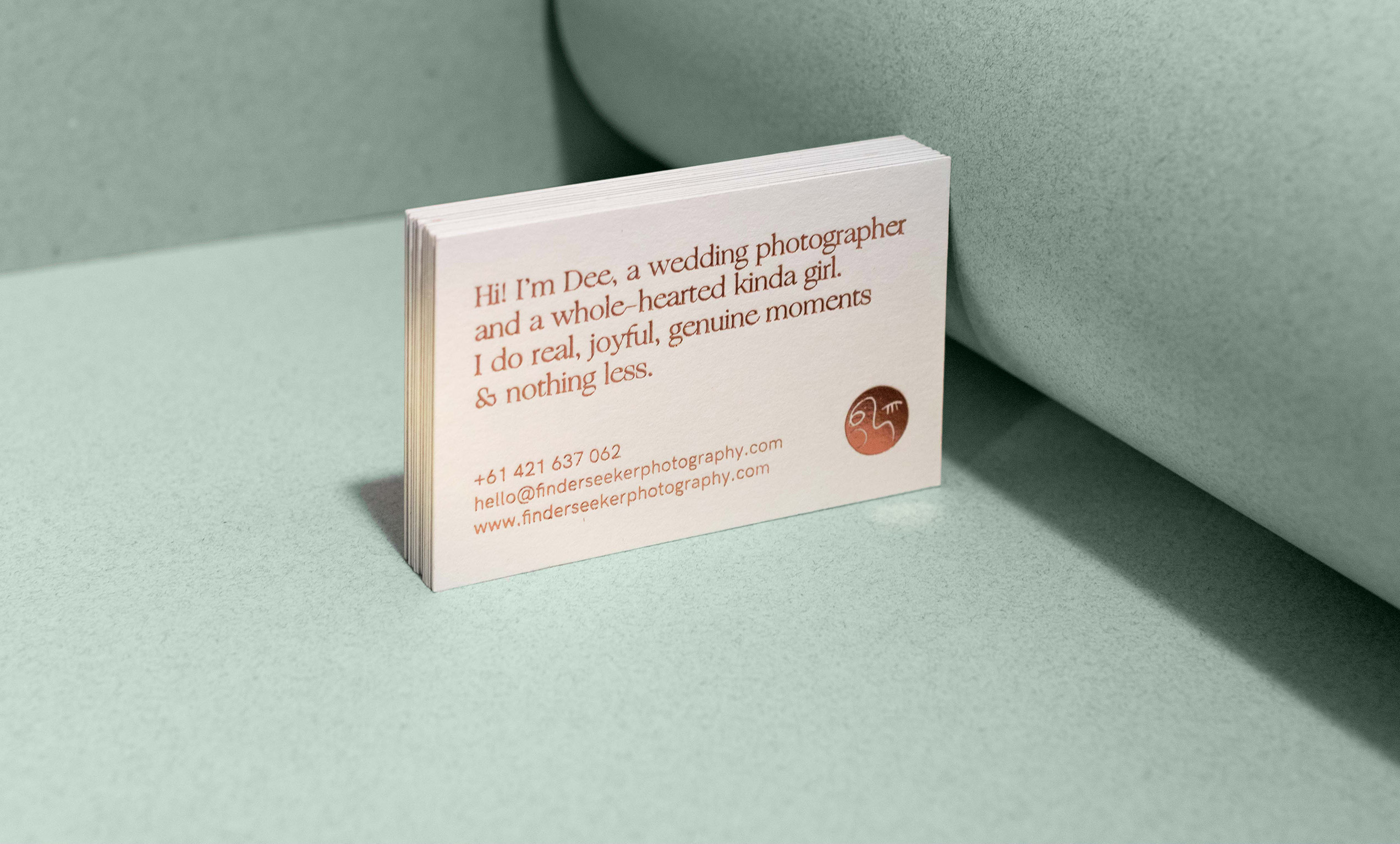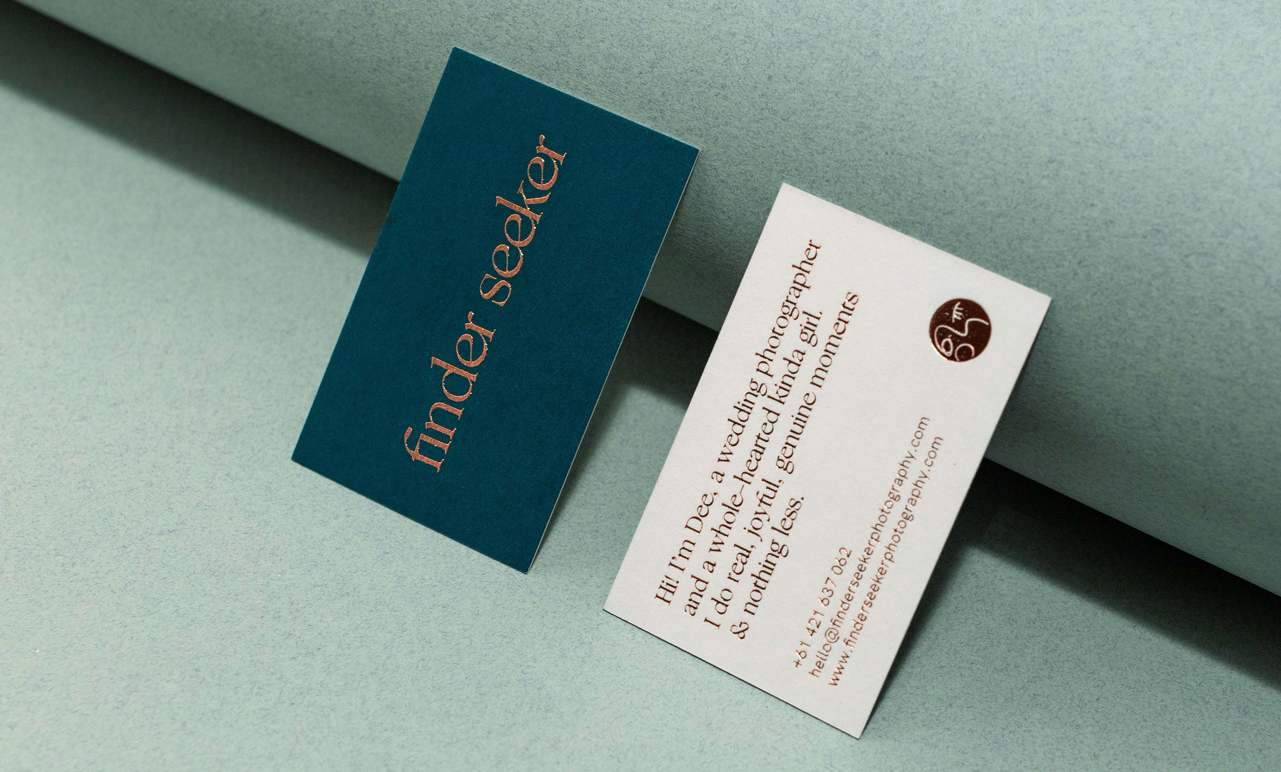 Dee, the person behind the Finder Seeker brand, is a wedding photographer with a very warm and personal approach and a talent for capturing moments of raw emotions. She wanted her new branding to reflect her style and personality, to already give clients a glimpse of what working with her like. There originated a fresh color scheme, an icon of a face squinting into the shutter. These come paired with classy typography, to give the identity a touch of nonchalant elegance. — Alishu.co