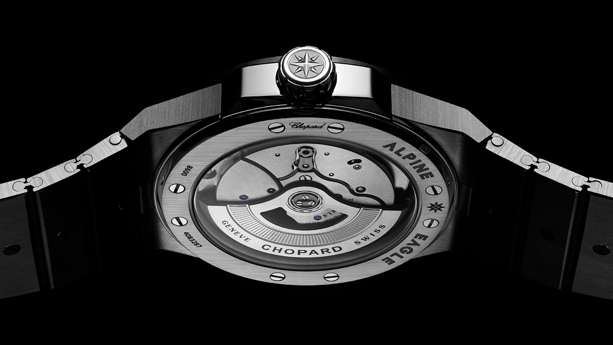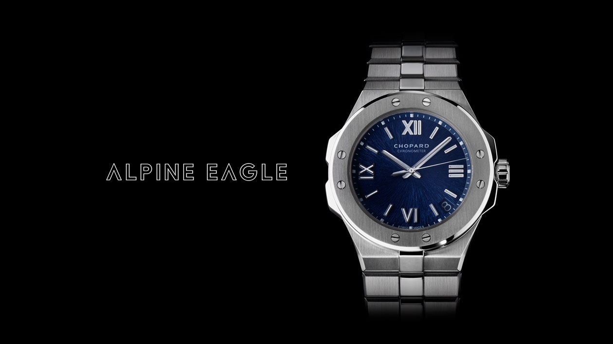 Acier is used for the logo of Alpine Eagle, a new collection of watches by Chopard, the Swiss manufacturer of luxury timepieces.