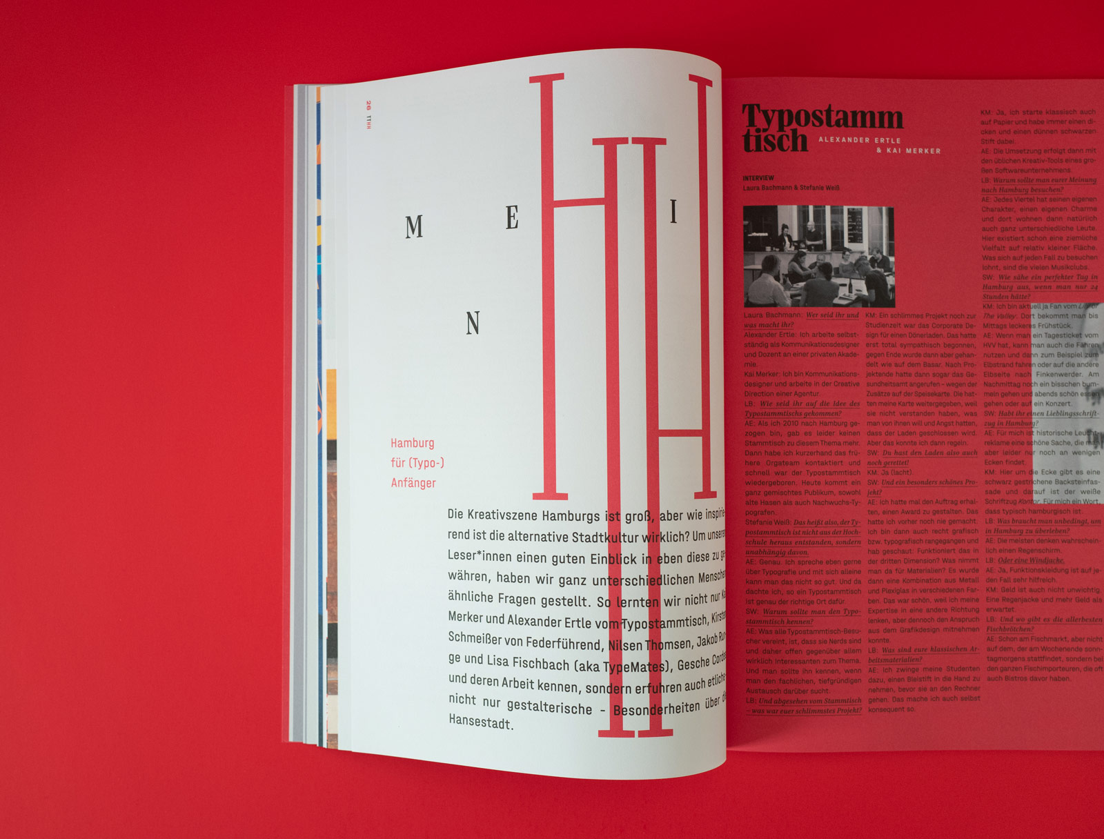In a reference to the Hamburg coat of arms, the tenth edition is designed with red as the main colour. Kreuzer gives each section of the 80-pages magazine a new visual impression, introducing the reader to the unique characteristics of the interview partners.