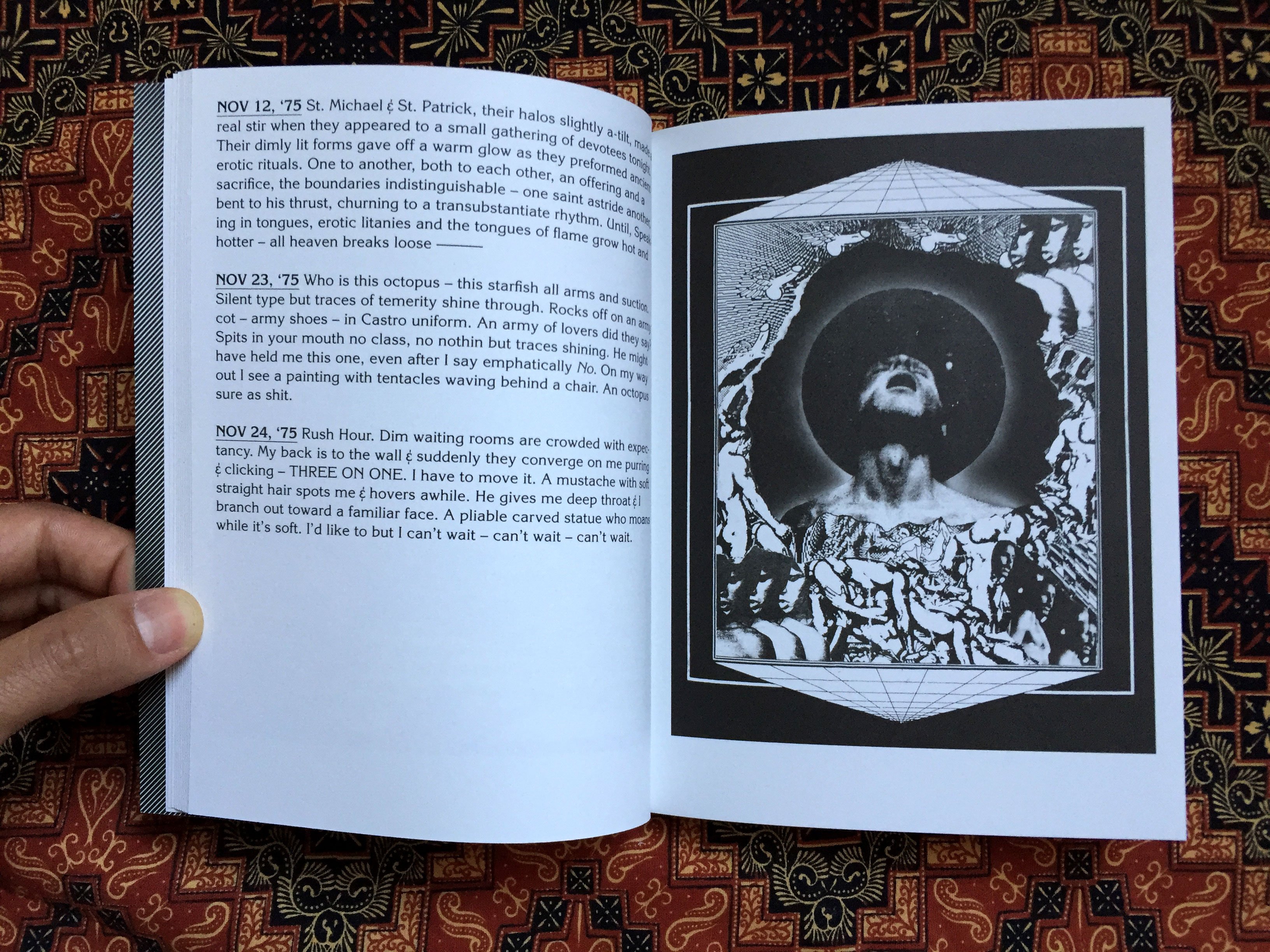 The double vinyl LP comes housed in a black and white gatefold jacket designed by Gwenaël Rattke featuring a photograph by Susan Middleton, an essay from bandmate Maurice Tani, and an 8.5×11″ insert with notes. […] [It is] released in tandem with Cowley’s homoerotic journal of the same title. […] — Dark Entries Records